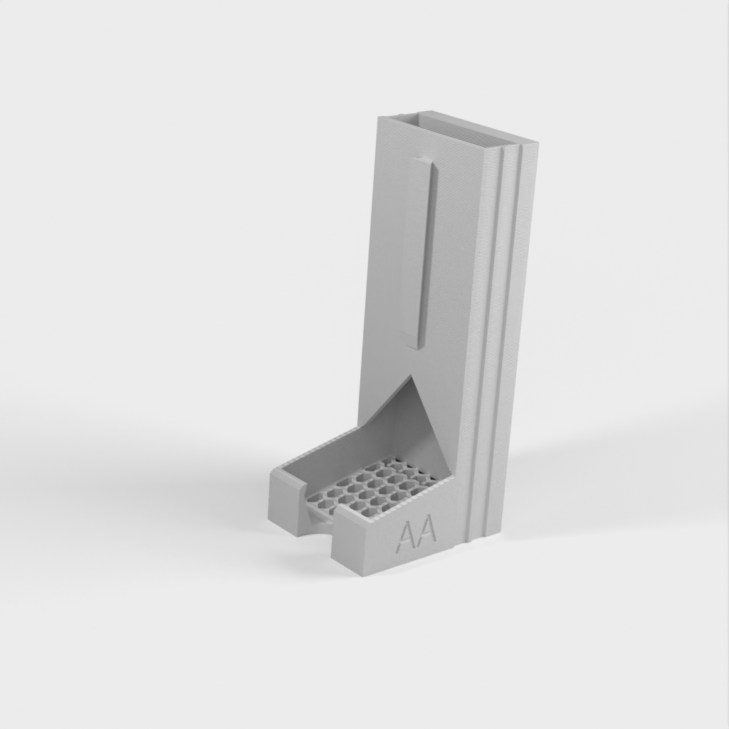 Soporte para pilas AA y AAA. Los soportes se pueden juntar y hay disponible un soporte de pared. Es un sistema práctico y espacioso para guardar sus pilas y mantiene su zona organizada y ordenada.