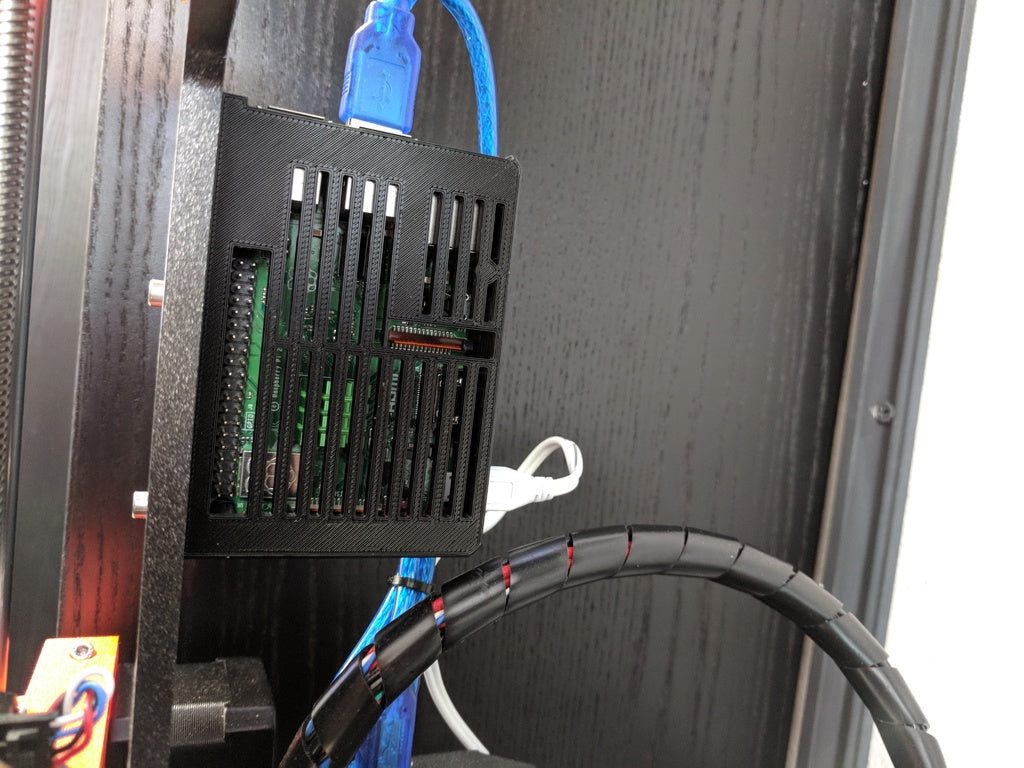 También incluye la opción de ser montado en una Prusa i3 mk3 con agujeros para los tornillos de montaje.Para la Raspberry Pi 3 B+.