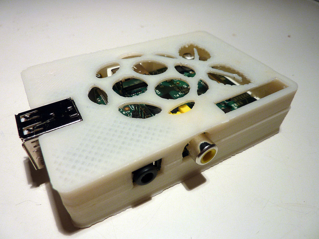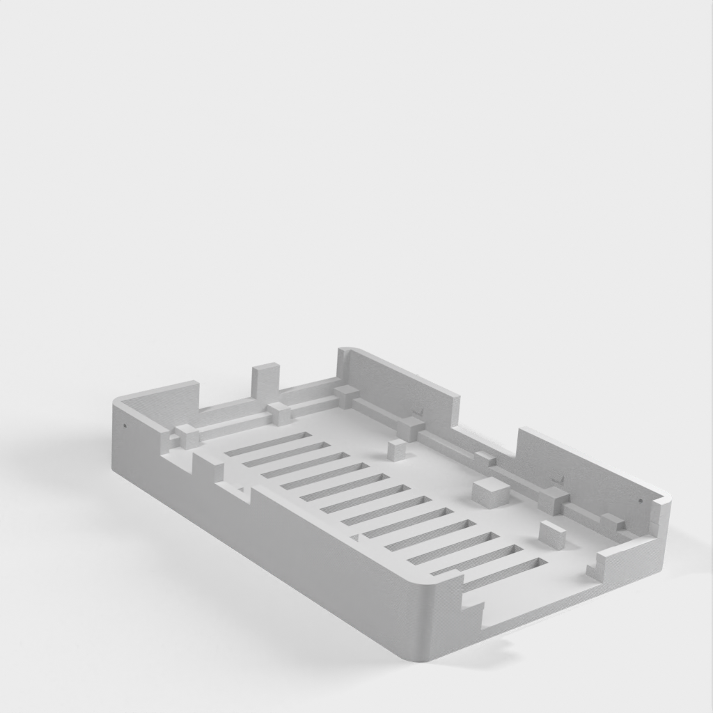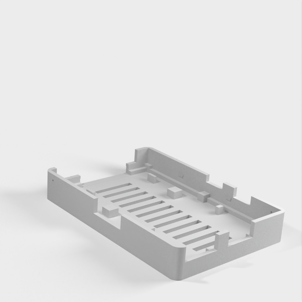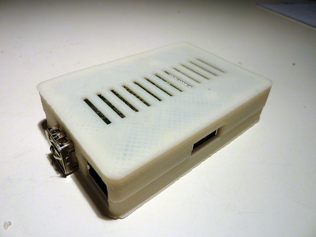 Esta es una revisión menor de la excelente caja de HansH para la Raspberry Pi. He añadido un puerto en la parte superior para permitir el acceso a los pines GPIO.