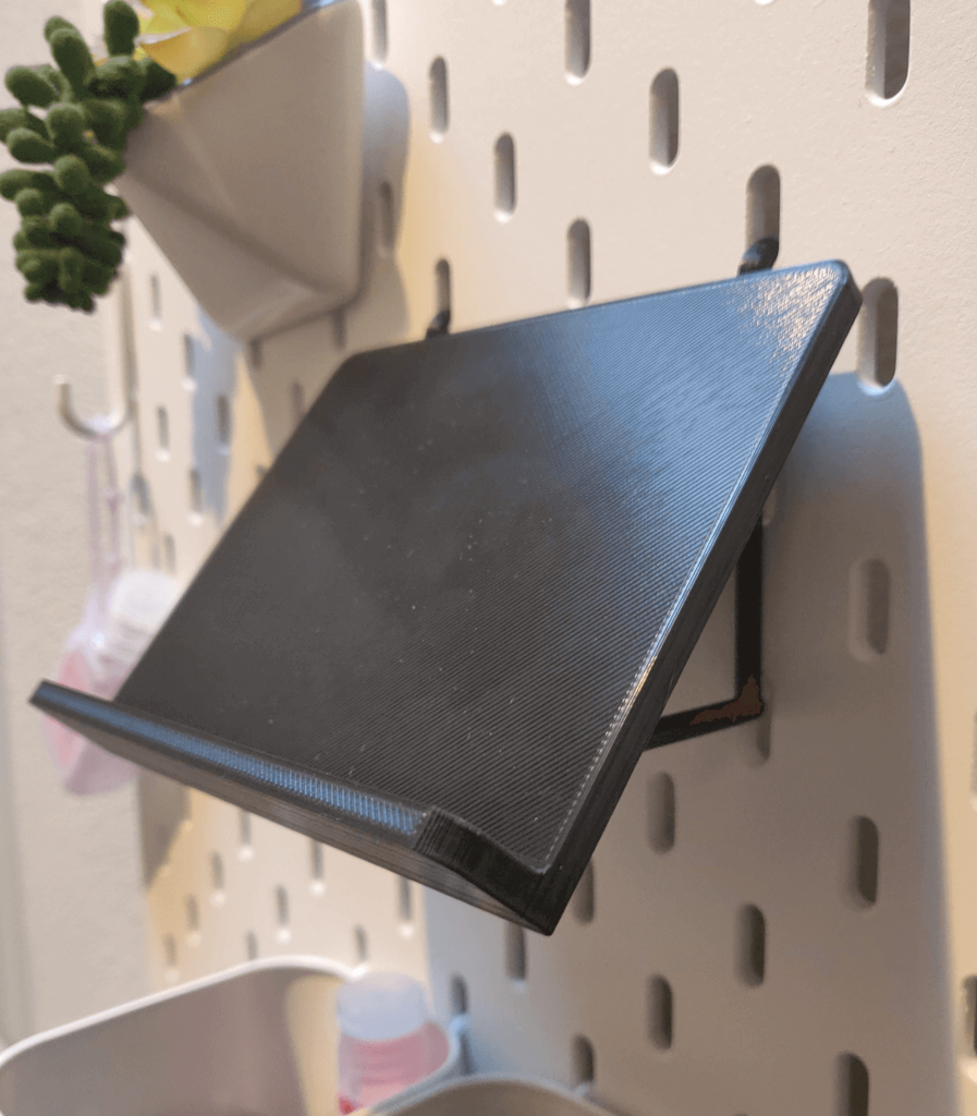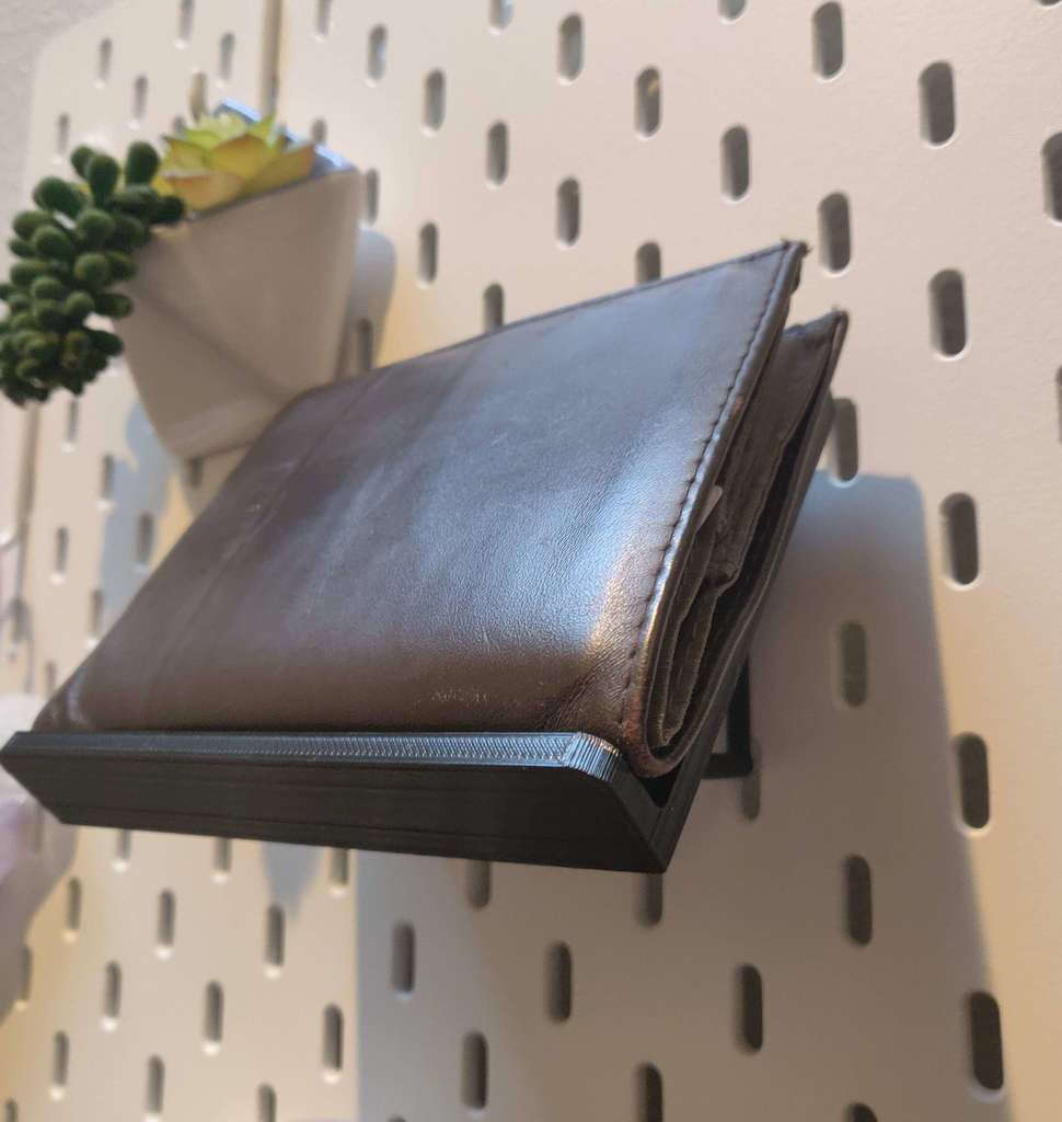 Estante para tablero perforado IKEA SKÅDIS. Cabe un bolso de tamaño mediano. El accesorio perfecto para organizar tu espacio de la mejor manera posible. Con este estante podrás guardar fácil y cómodamente tu cartera en un tablero Skådis de IKEA.