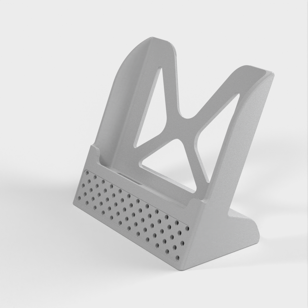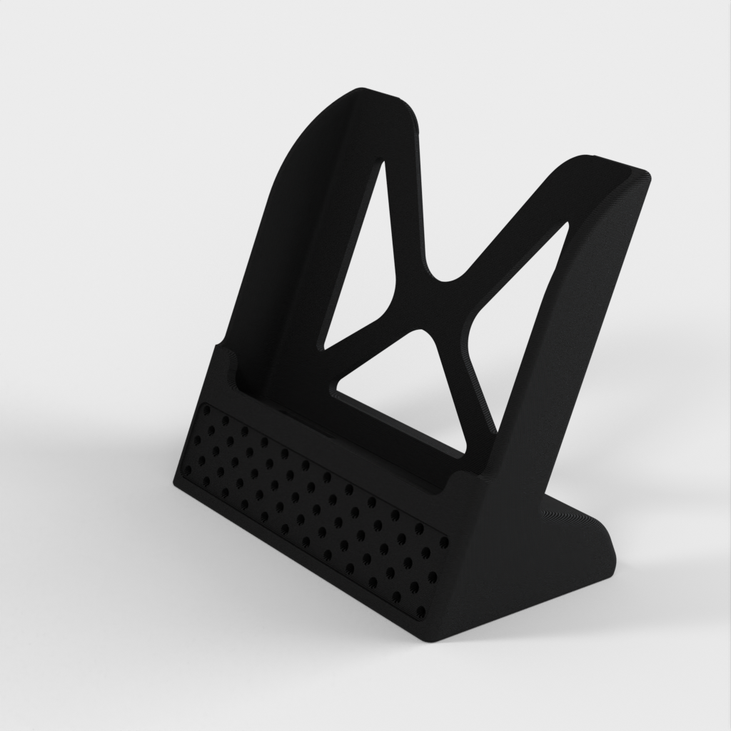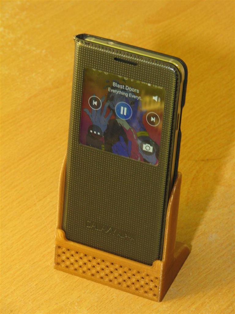 Este soporte de teléfono es ideal para un Samsung Galaxy Alpha con funda S-view o teléfonos de tamaño similar. El tamaño máximo es ancho 70mm (2.75') x profundidad 13mm (0.5'). Hay versiones disponibles con orificios para el altavoz en el lado izquierdo o derecho.