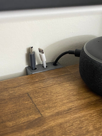 Este es un soporte para cables hecho de TPU para mayor flexibilidad. Se mantiene en su lugar por la cinta y la fricción entre el escritorio y la pared, garantizando mate y almacenamiento seguro de sus cables.