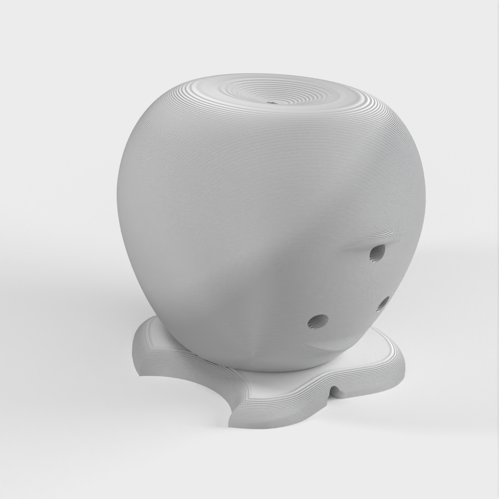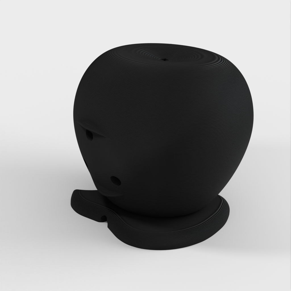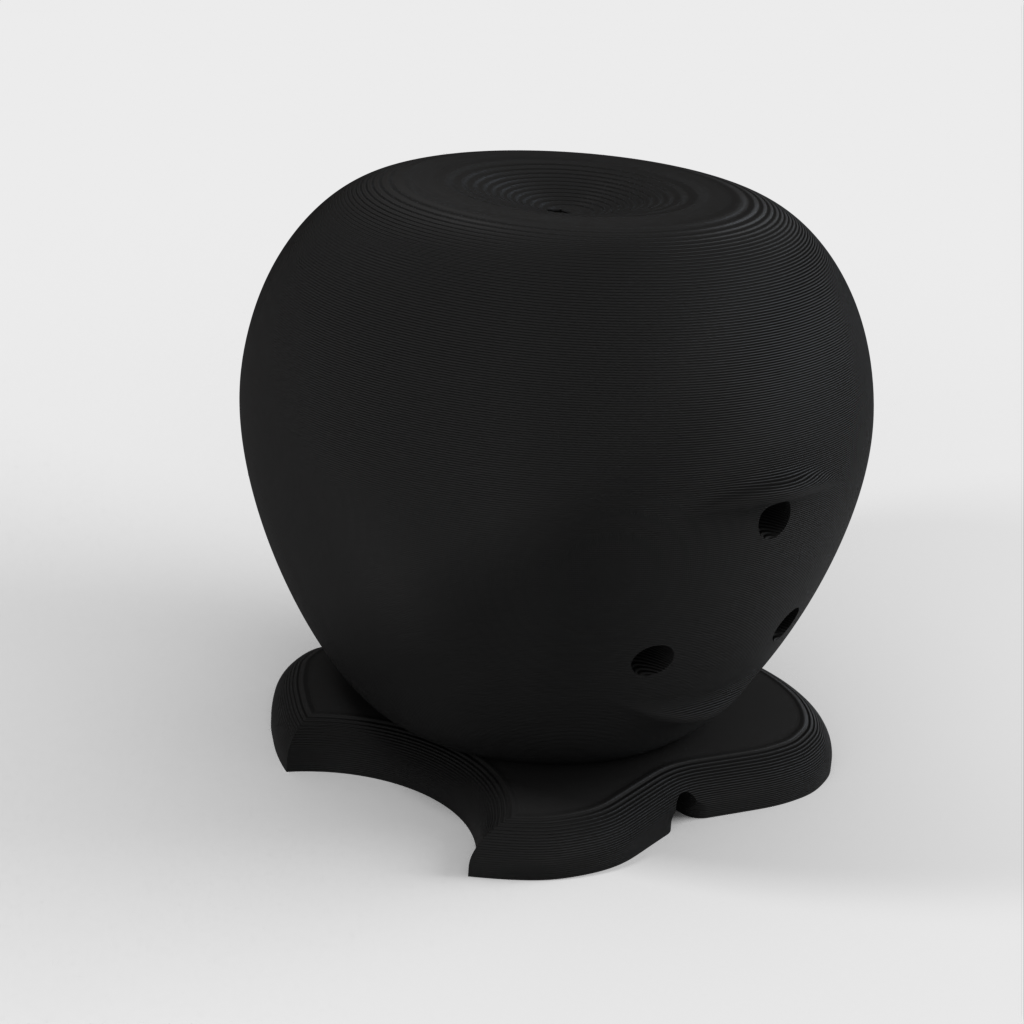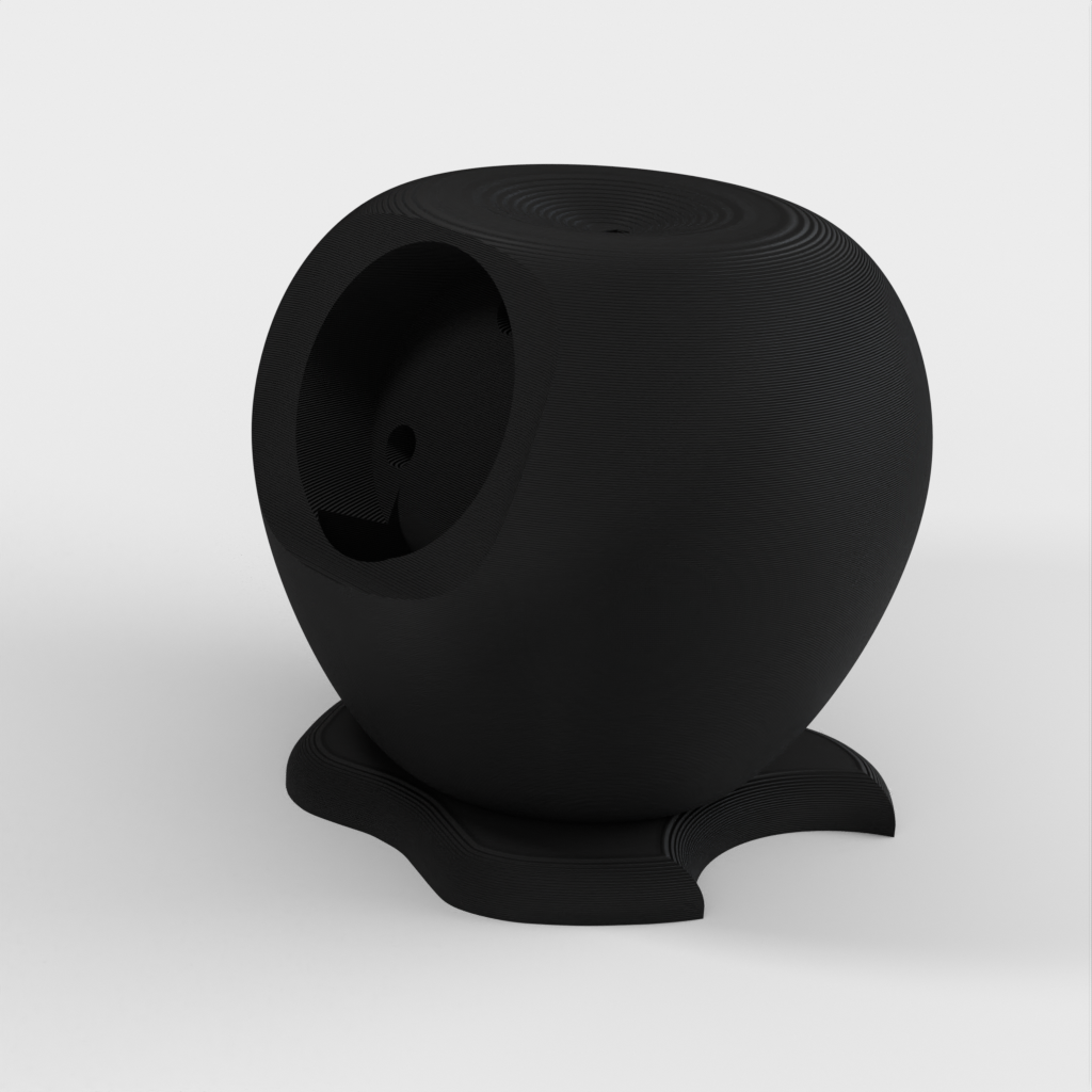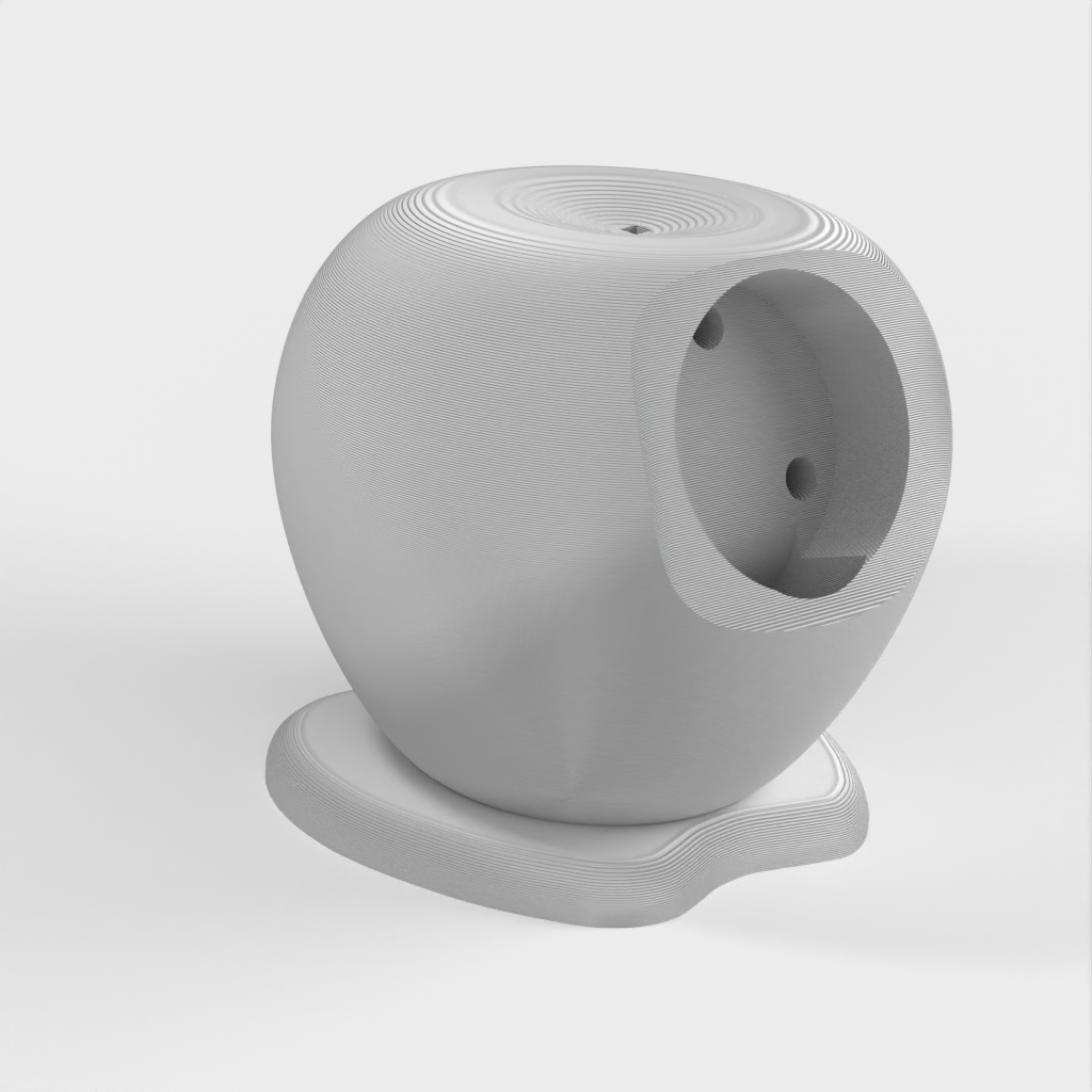 Soporte de carga para Apple Watch (40 mm) diseñado con la forma del logotipo de Apple. El cable pasa por el orificio y el cargador encaja en su sitio. El modelo tiene agujeros en la parte trasera para deslizar el cargador hacia fuera si es necesario.