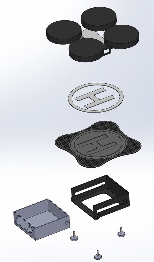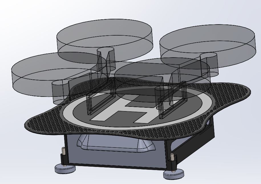 El soporte tiene tres almohadillas de ajuste para nivelar, lo que garantiza un aterrizaje estable y uniforme en todo momento. Con una huella máxima de 280 x 280 x 77 mm, esta pista de aterrizaje encaja perfectamente en cualquier entorno profesional o de hobby.