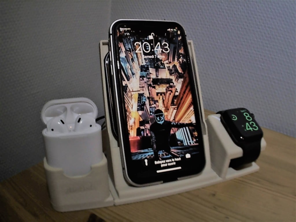 - La base de carga todo en uno para iPhone (u otros), un Apple Watch y también Apple Airpods .