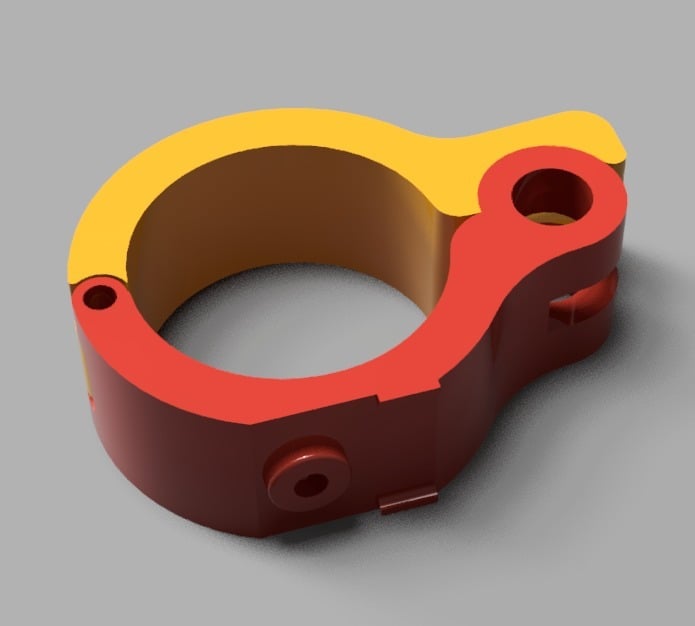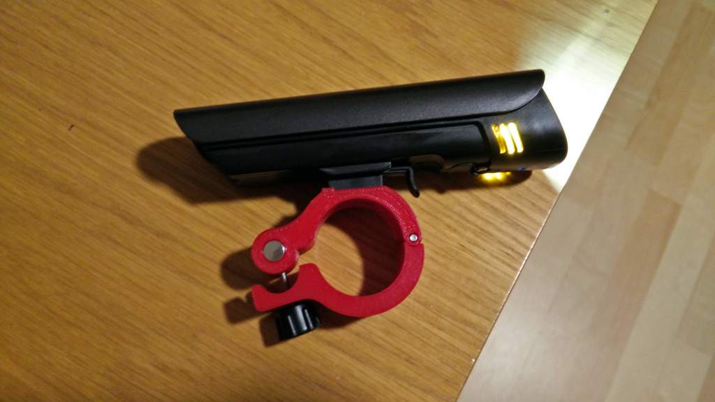 El soporte de luz para bicicleta Degbit es un soporte diseñado para montar la luz para bicicleta DEGBIT (paquete de luz frontal de 60 lux) en manillares de ~32 mm de diámetro. Por lo tanto, todavía se puede utilizar uno de los insertos de goma. El clip deslizante y el mecanismo de cierre de la lámpara se pueden mover fácilmente de la abrazadera original a la abrazadera impresa. El único accesorio adicional necesario es un tornillo M3 para la bisagra.