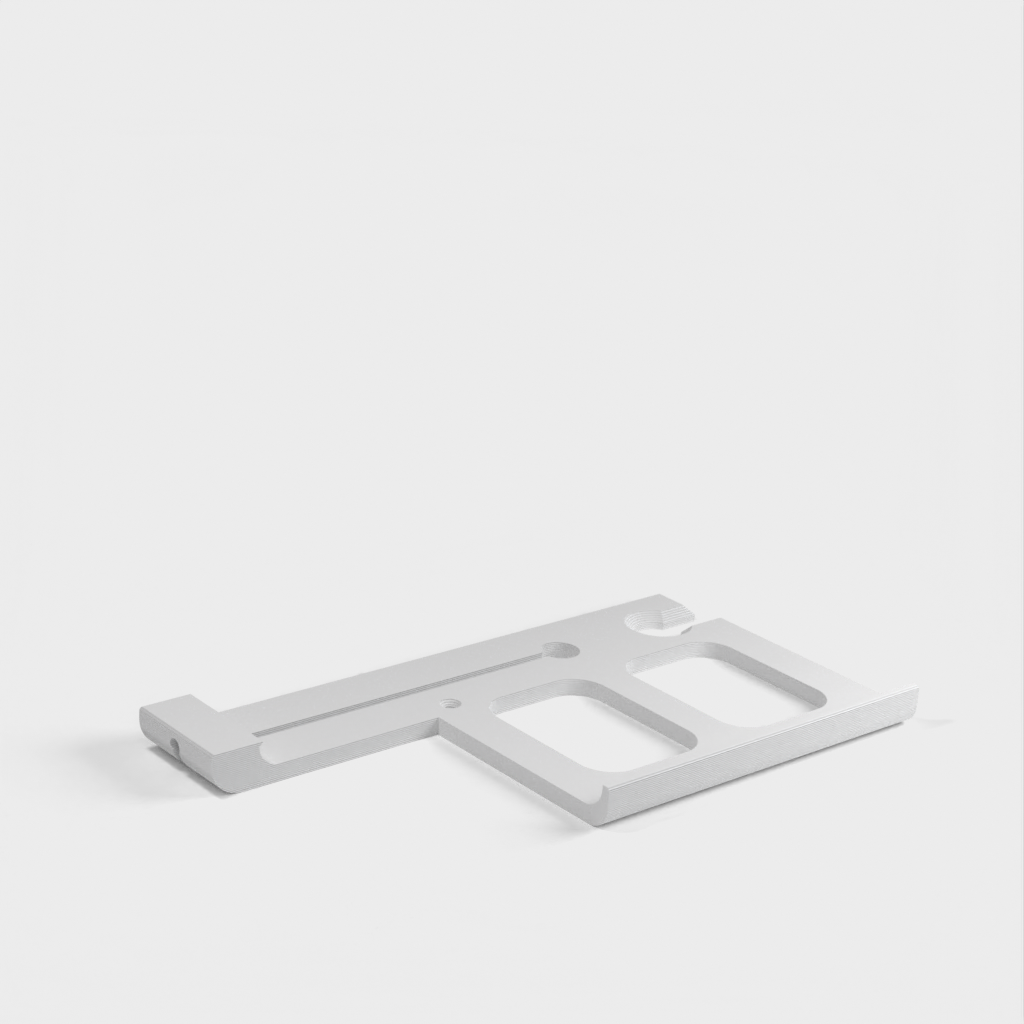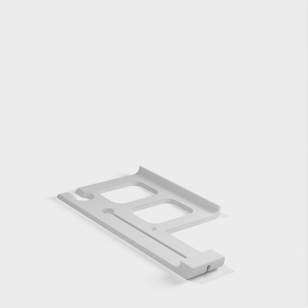Este soporte de pared para iPad Air está diseñado para facilitar su uso. El iPad se puede quitar y volver a colocar fácilmente presionando el asa en el lado derecho. Asegúrese de que encaje de forma segura en el bloqueo cuando se inserte en el soporte de pared. También hay espacio para un conector Lightning en el lado izquierdo, para que el iPad se pueda cargar mientras está montado.