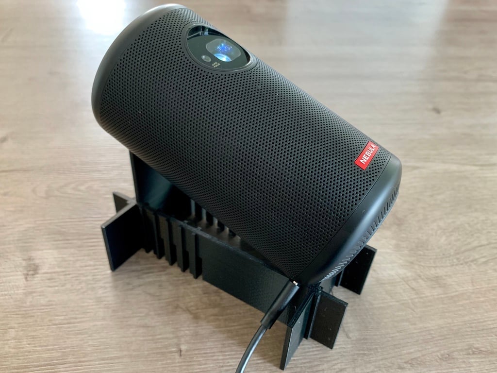 Este es un soporte de proyección de techo para el proyector Nebula Capsule 2. El soporte es muy estable y rápido y fácil de usar. Funciona en el suelo, mesita de noche, cama, estantería, etc. y tiene ángulos ajustables. Puede funcionar con una pequeña memoria USB y un cable de alimentación USB-C conectados. Se empaqueta de forma plana y cabe en el estuche de la Nebula Capsule 2 y es fácil de imprimir sin un soporte.