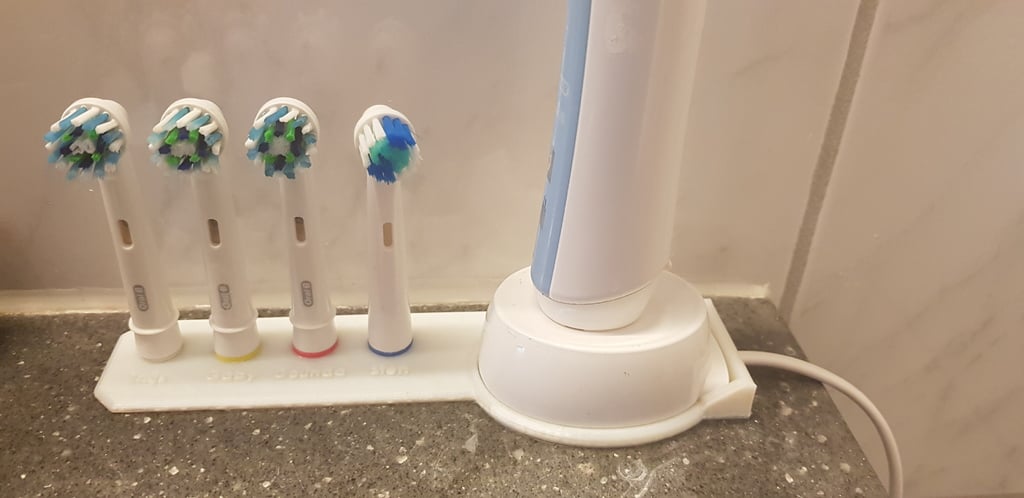 Este funcional soporte ofrece una solución sencilla y elegante para mantener organizados los cabezales de su cepillo de dientes Oral-B, así como su cargador de cepillo de dientes Braun. El diseño es minimalista y discreto, lo que lo convierte en un complemento estético para cualquier baño. El soporte ayuda a organizar sus necesidades de almacenamiento de higiene bucal de manera clara, para que pueda encontrar fácilmente el cabezal de cepillo de dientes correcto y mantener el cargador en su lugar. La construcción mejorada garantiza una solución robusta y duradera que proporciona un ajuste óptimo para los cabezales de su cepillo de dientes y el cargador. Con un etiquetado claro de las ubicaciones individuales, es fácil identificar y separar los cabezales de cepillo de dientes de la familia.