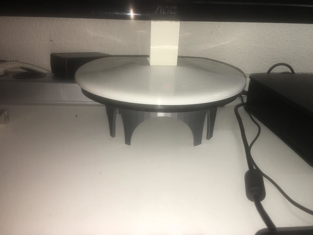 Soporte para un monitor que se adapta a la mayoría de los monitores con base redonda. Proporciona una altura de 7 cm y tiene un diámetro de 20 cm que se puede ajustar según sea necesario.