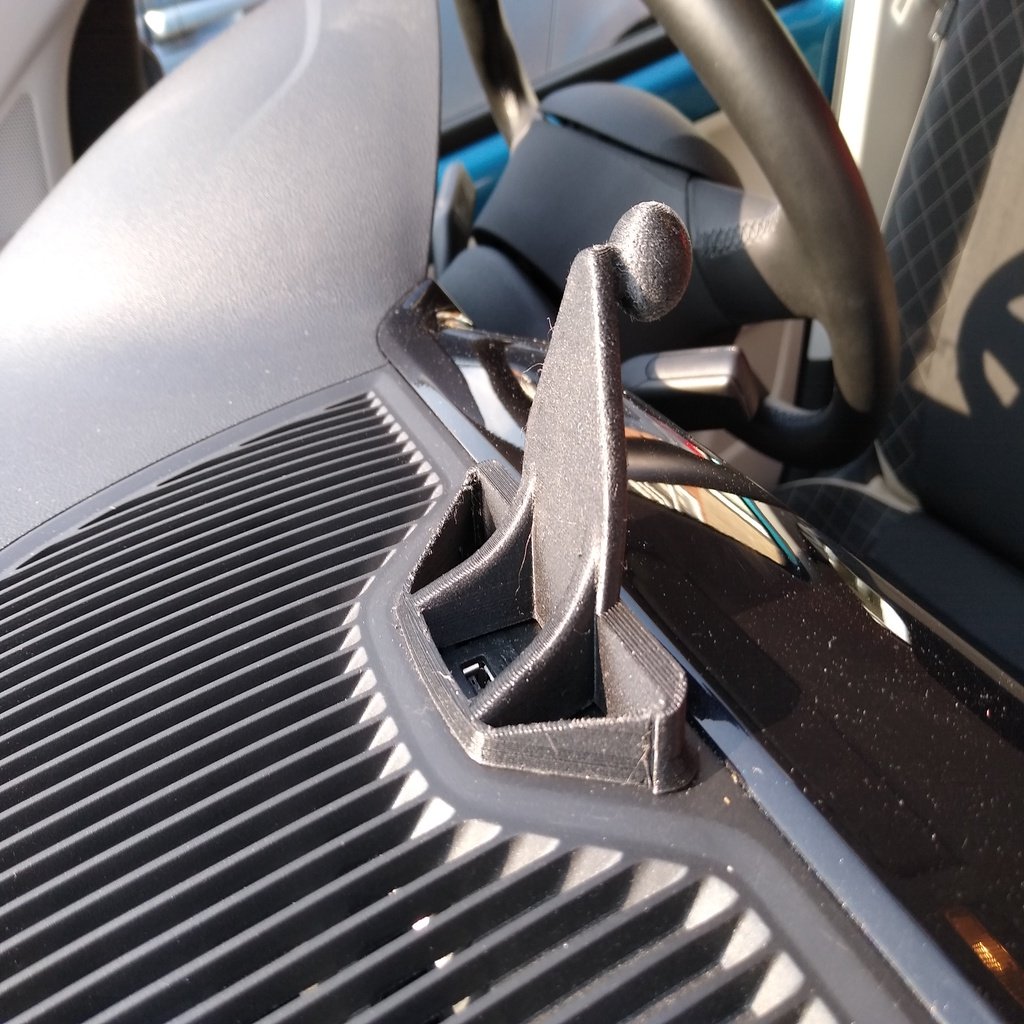 Este es un soporte para GPS Garmin para los tipos de montaje posteriores que se encuentran en los Citigo, Up y Mi de 2017 que tienen un conector USB debajo de la base. El cuello de montaje tiene una bola de radio de 17,4 mm que encaja en el conector estándar que se encuentra en los soportes de GPS Garmin. Debería ser lo suficientemente alto como para admitir GPS de hasta 6".