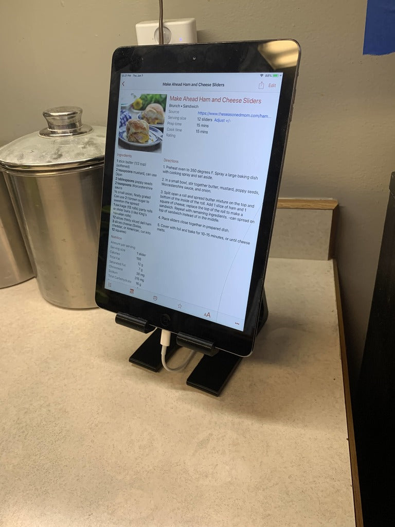 Este elegante soporte para iPad ofrece una solución práctica para colocar su Apple iPad. Está diseñado específicamente para adaptarse al iPad Air (2.ª generación) y también es totalmente compatible con varios modelos de iPad Pro, lo que lo convierte en un accesorio versátil para su tableta. El soporte le permite colocar su dispositivo en una posición estable, ideal para una variedad de actividades, como ver videos, leer libros electrónicos, seguir recetas en la cocina o participar en videollamadas. Con este soporte para iPad, puede liberar sus manos y disfrutar de un uso más cómodo y ergonómico de su iPad en la vida cotidiana.