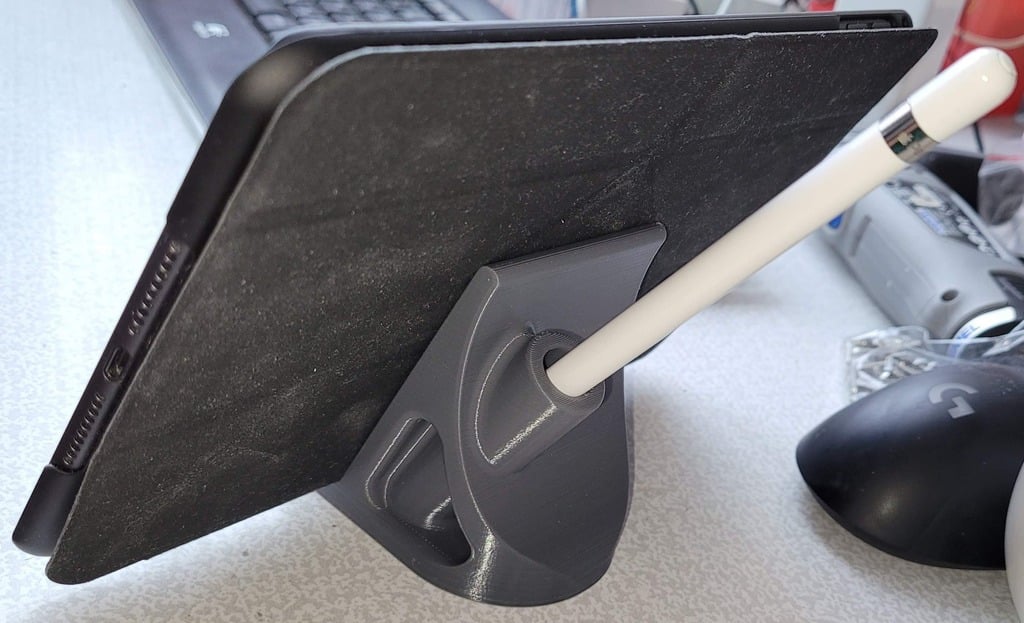 Optimice su espacio de trabajo o área de entretenimiento con este práctico soporte para iPad. Está diseñado para brindar a su iPad una ubicación estable y segura, ya sea que esté trabajando, estudiando o disfrutando de contenido multimedia. El soporte está equipado con un soporte integrado para su Apple Pencil u otro lápiz óptico, para que siempre esté al alcance y no se pierda. Esto asegura que pueda tomar rápidamente su bolígrafo cuando llegue la inspiración.