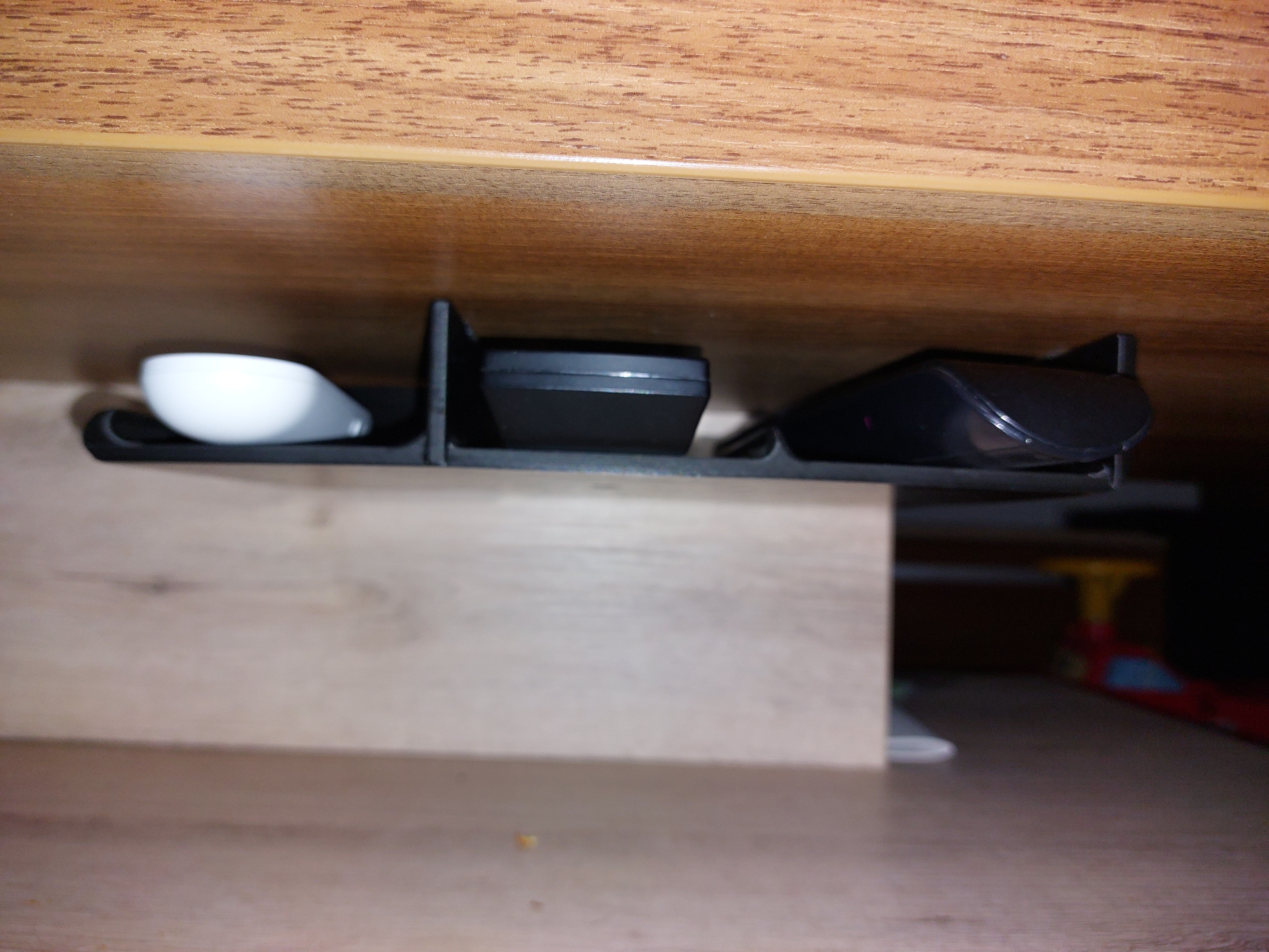 Este soporte para mando a distancia está diseñado para crear orden y minimizar el desorden en el salón, ofreciendo una solución de almacenamiento inteligente para sus mandos a distancia y pequeños dispositivos electrónicos. El soporte se monta discretamente debajo de una mesa o estante con cinta de doble cara, asegurando que sus mandos a distancia estén a mano cuando los necesite, pero fuera de la vista cuando no estén en uso.