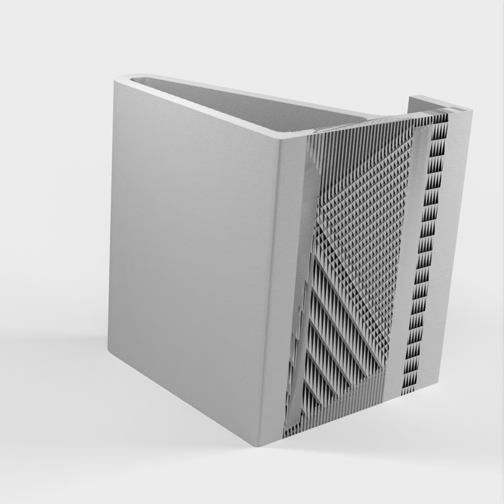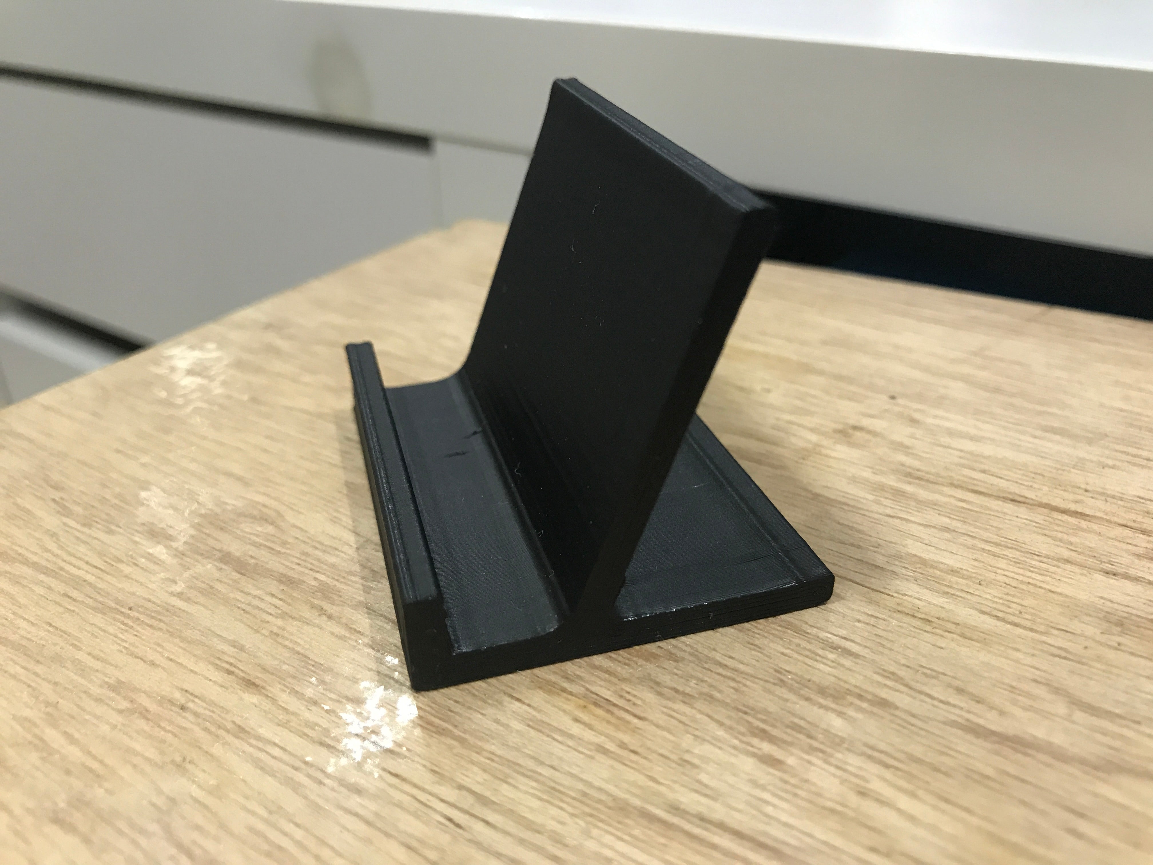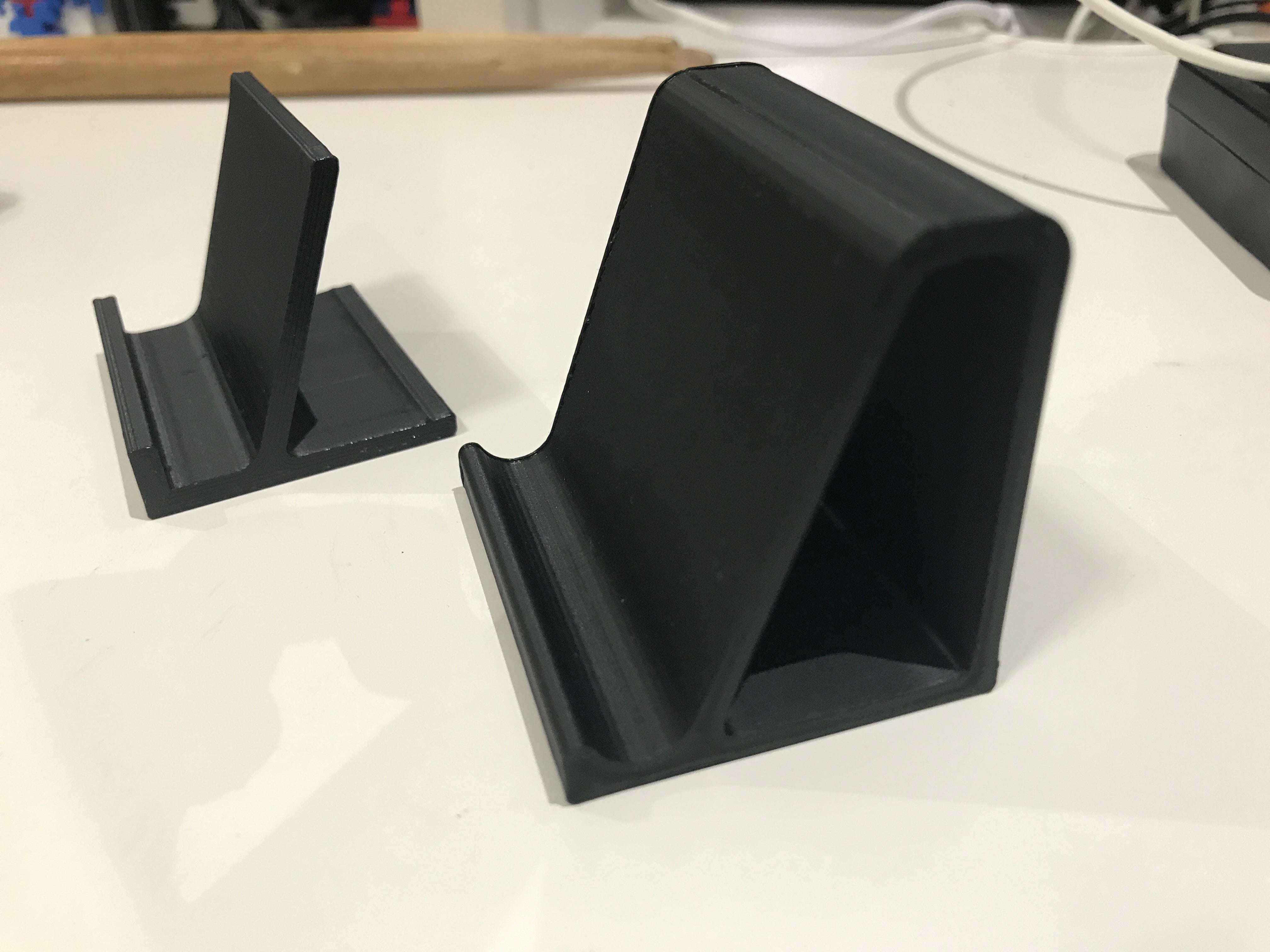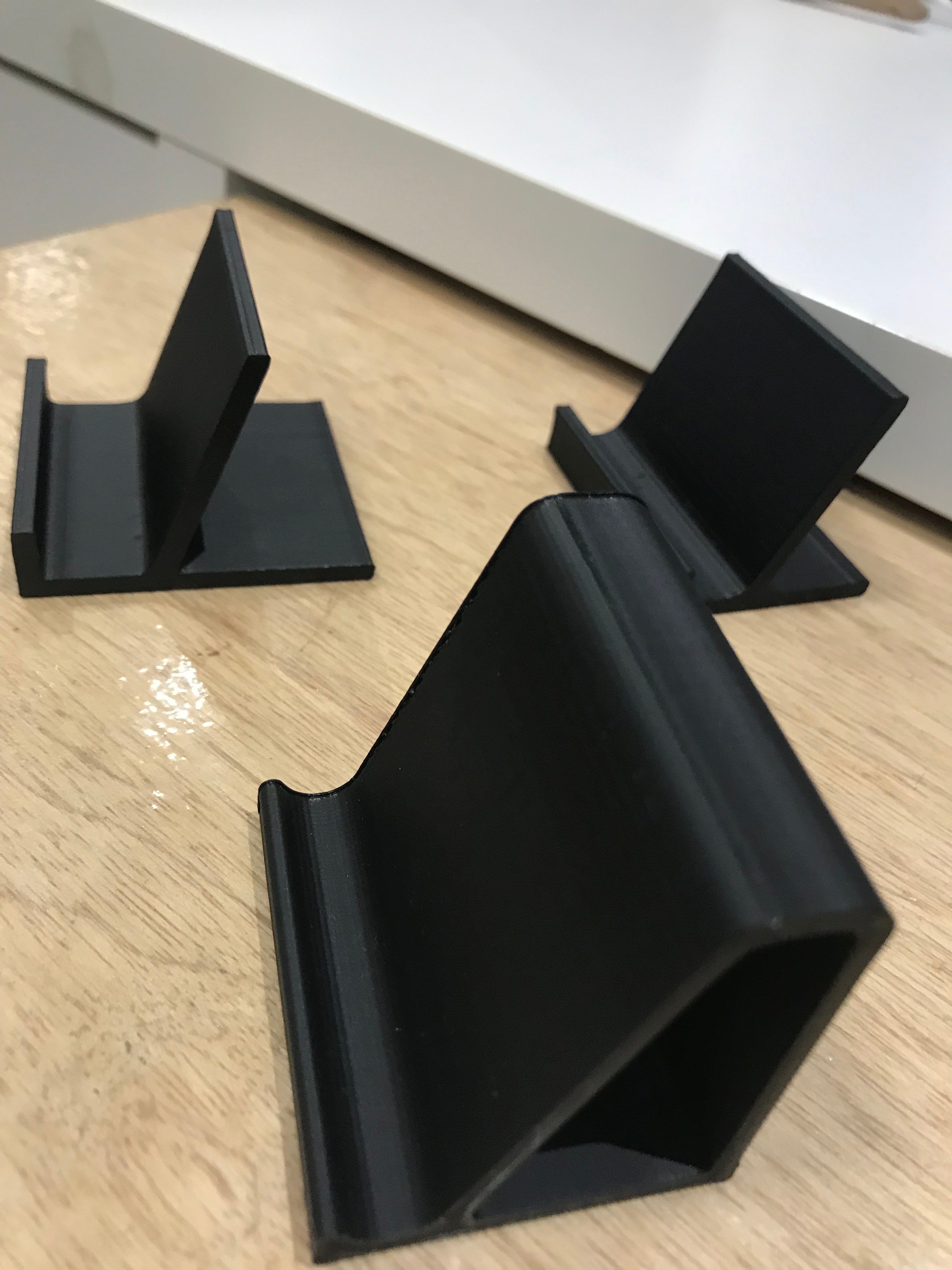 Este es un soporte de teléfono simple que se adapta a prácticamente todos los teléfonos y tabletas. Este soporte viene en dos versiones diferentes, una versión más resistente para viajar que tiene la parte trasera apoyada y otra versión que ahorra filamento y tiempo, pero no es tan buena para llevar de un lado a otro ya que puede romperse.
