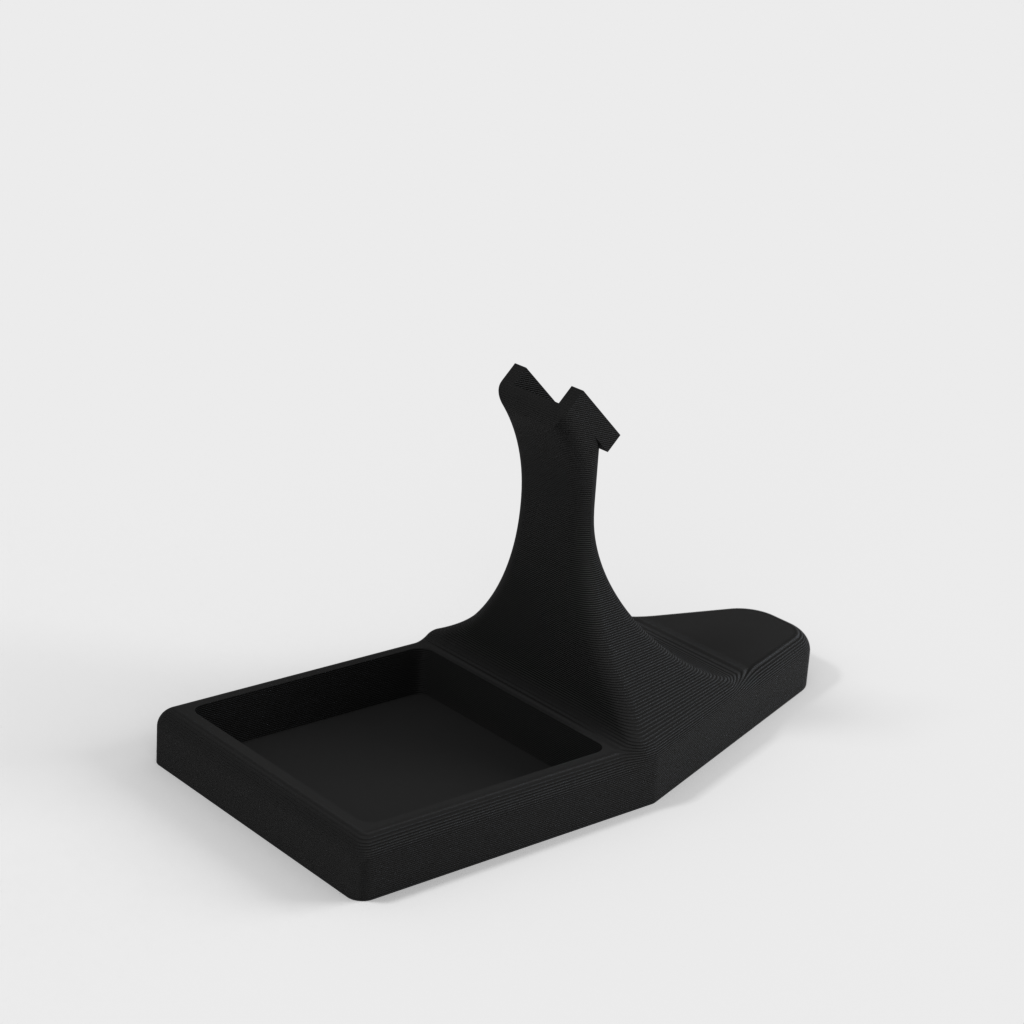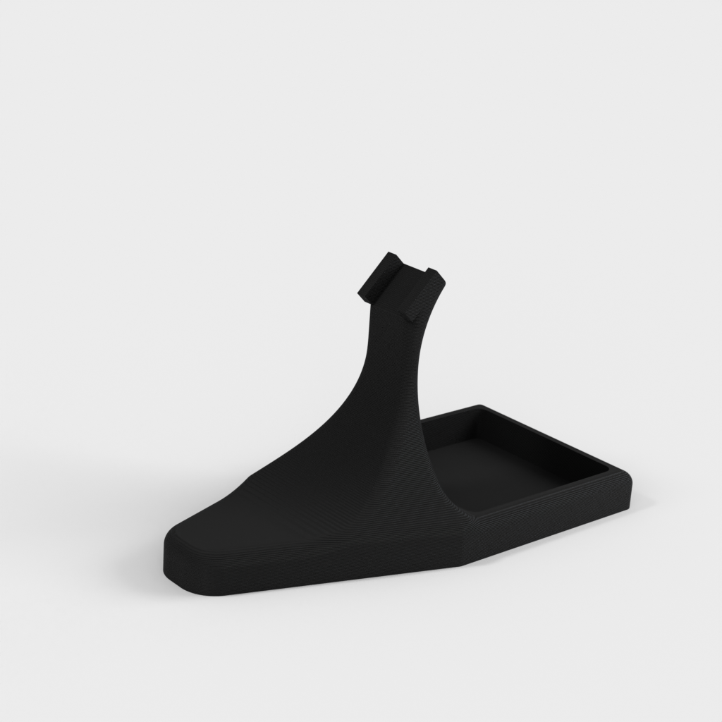 El soporte para soldador TS100 es una solución práctica para guardar el soldador cuando no está en uso. Está diseñado para adaptarse al soldador TS100 e incluye un espacio para una esponja húmeda para limpiar la punta de soldadura. El soporte también está equipado con un clip para una arandela M8 (22 mm de diámetro exterior y 8 mm de diámetro interior) que funciona como superficie de contacto. Además, el soporte ha recibido una actualización que ahora incluye un modelo para un soporte de limpiador de puntas de alambre.