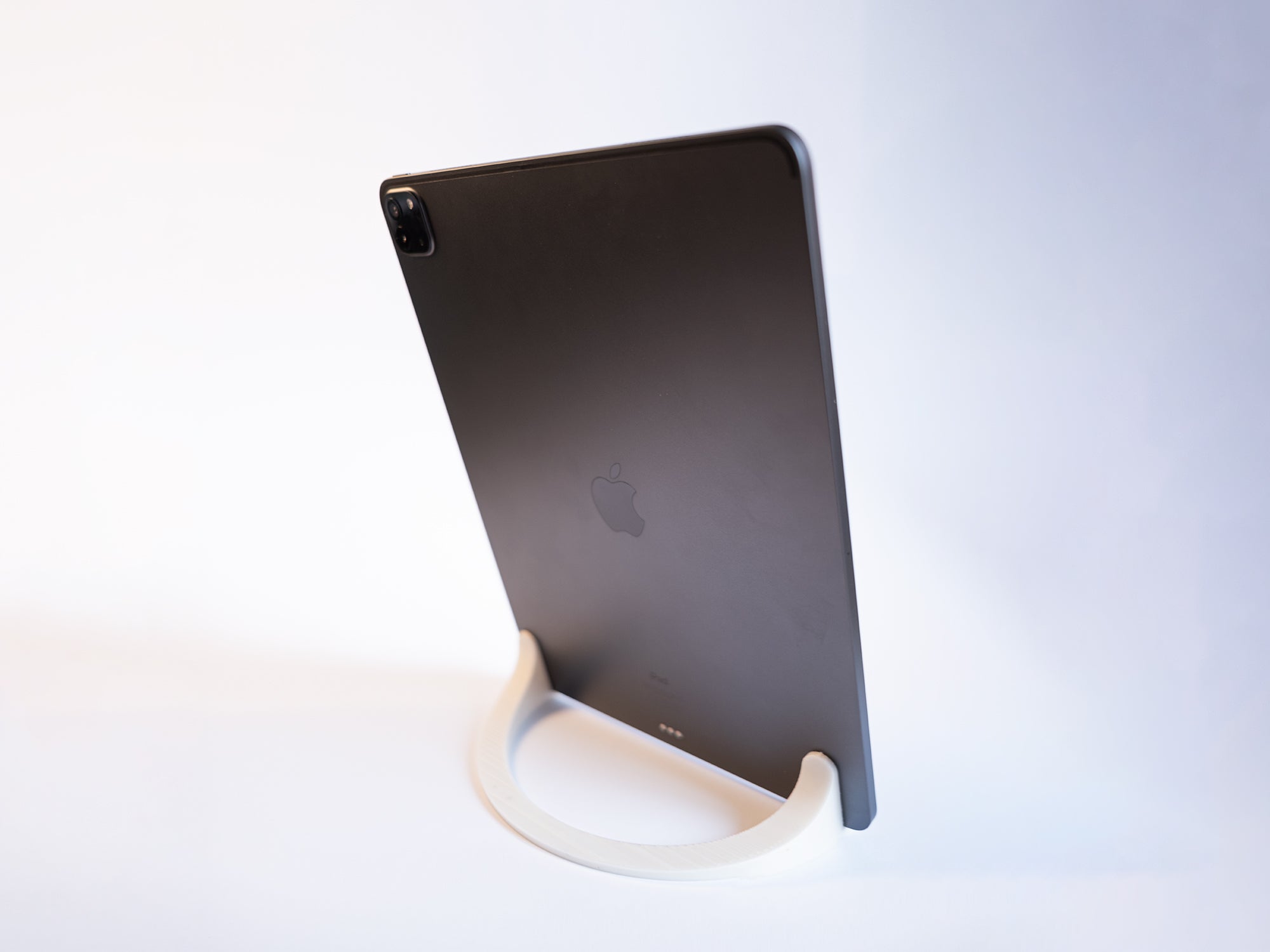 Soporte para iPad Pro de 12,9' que funciona tanto en orientación vertical como horizontal. También es compatible con iPad Pro de 11' y el nuevo iPad Air en modo horizontal. Perfecto para ver vídeos, realizar conferencias o utilizarlo como segunda pantalla.