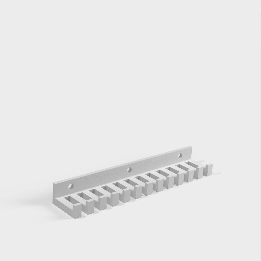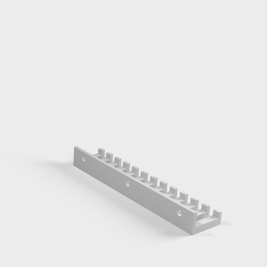 El soporte para cables pequeños de 12 pistas está diseñado para montarse fácilmente en el lateral de su banco de trabajo para sujetar cables más pequeños, como cables USB. Mide 125mm de largo con 12 ranuras de 5mm de ancho. Los extremos tienen un relieve de 4 mm para evitar que los cables se deslicen.