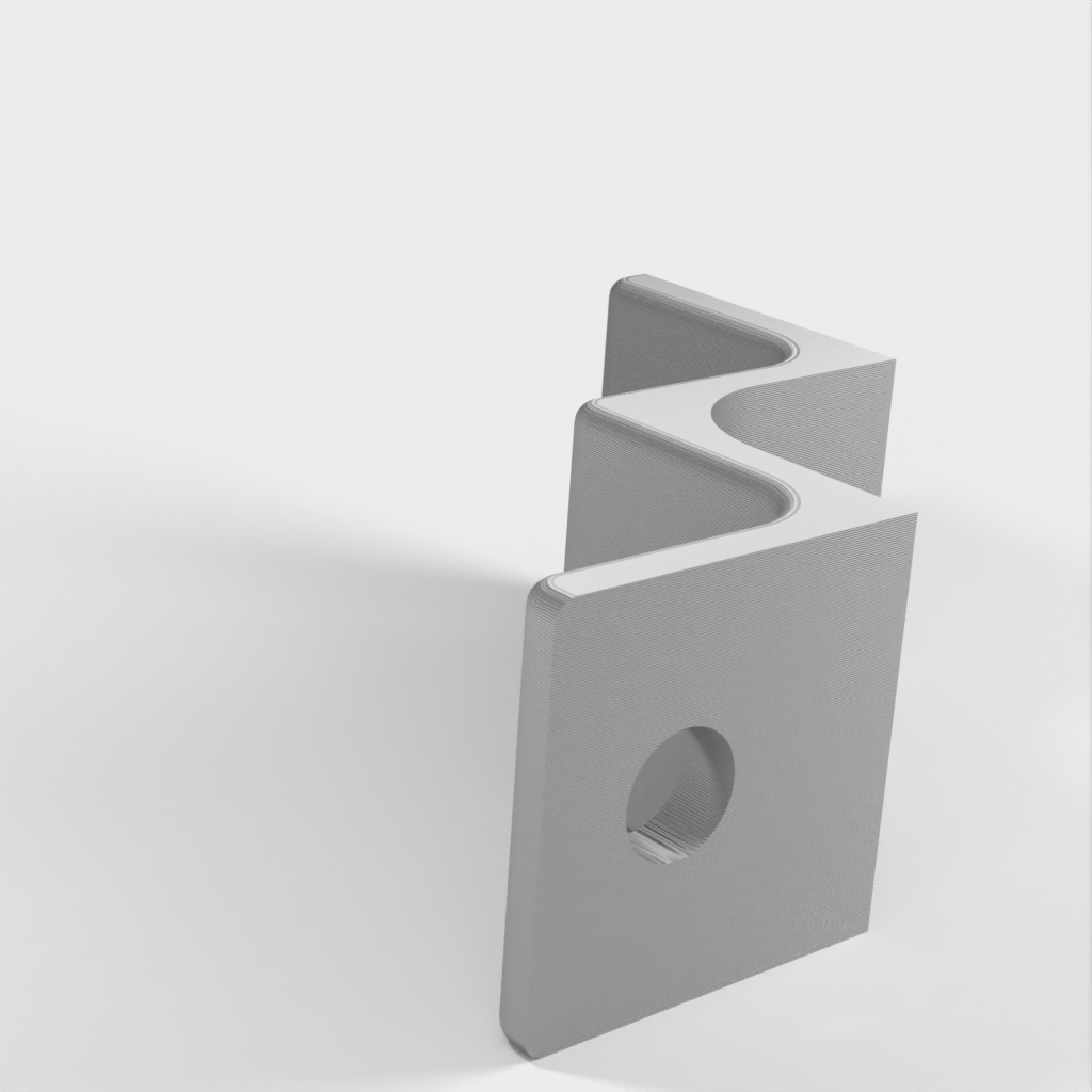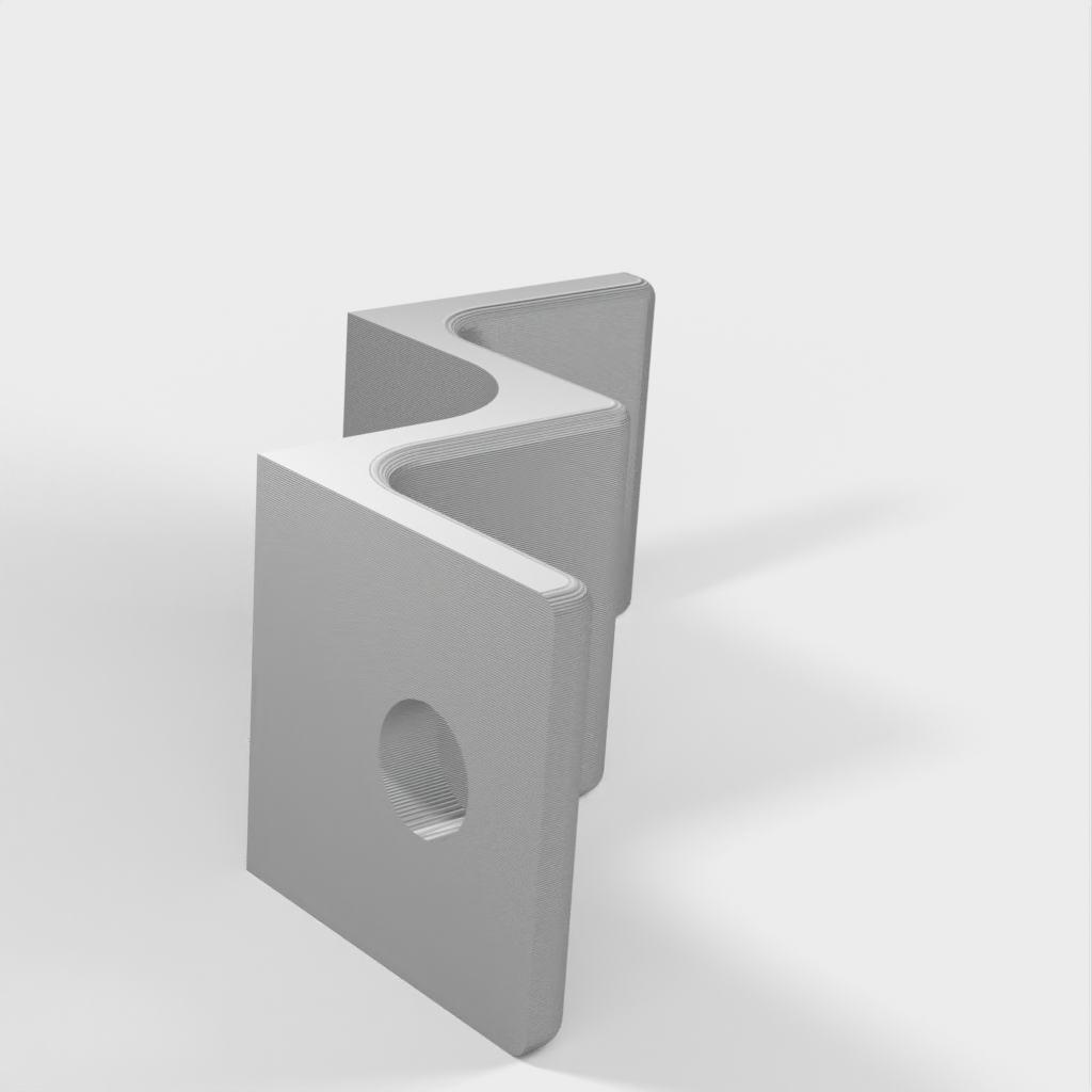 Portacables pequeño para cables alargadores con un diámetro máximo de 7 mm. Este producto se fabrica en las variantes plana y de esquina. El modelo pesa poco más de 1 g, por lo que es fácil de manejar. Se recomienda imprimir el portacables en ASA, ABS u otro material duradero. No se necesita una resolución especialmente alta para la impresión.
