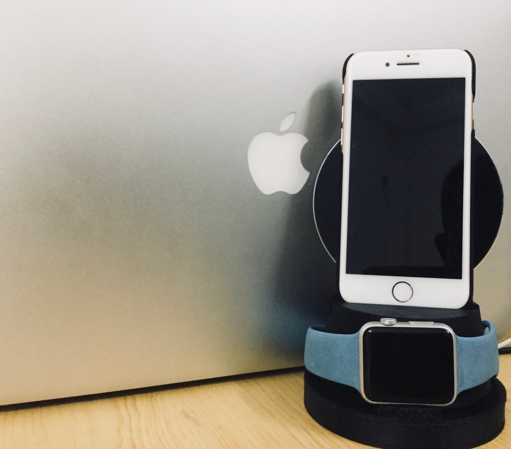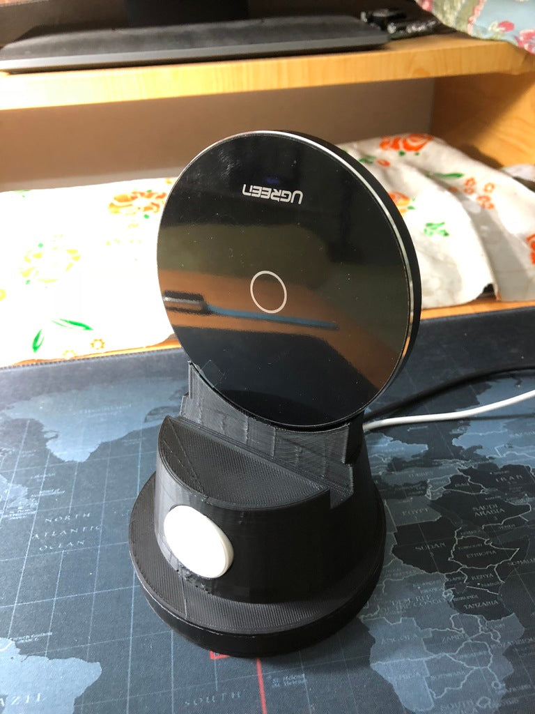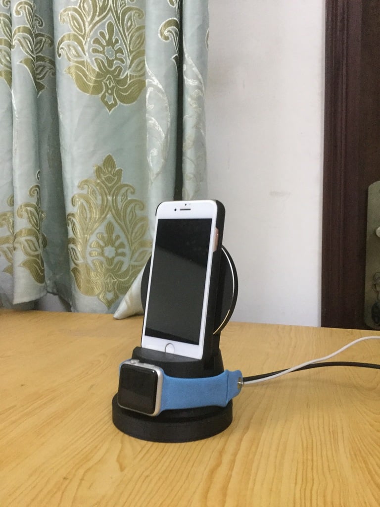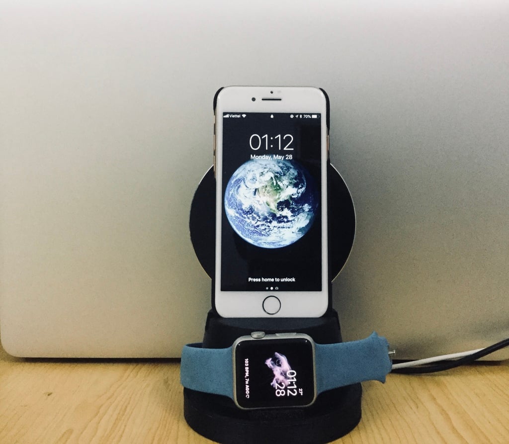 Base de carga para iPhone y Apple Watch con soporte para carga cableada e inalámbrica