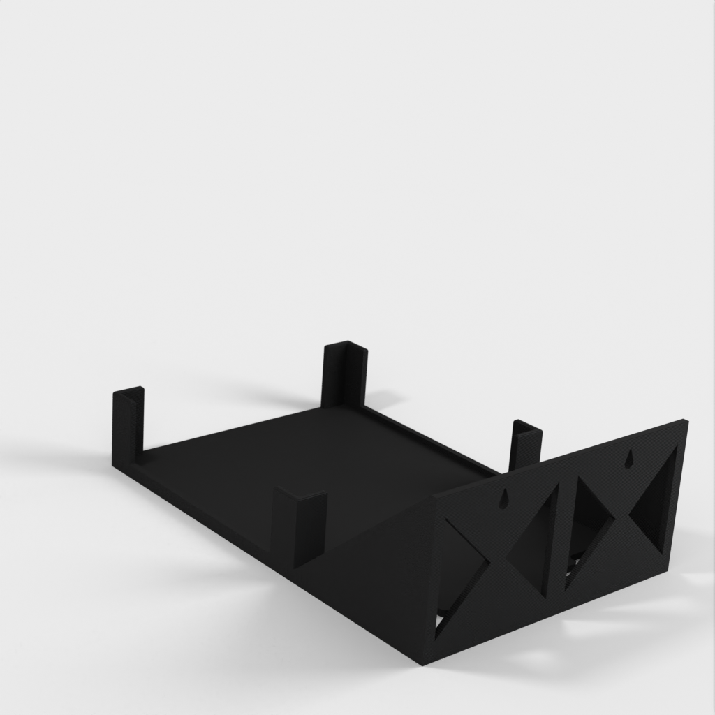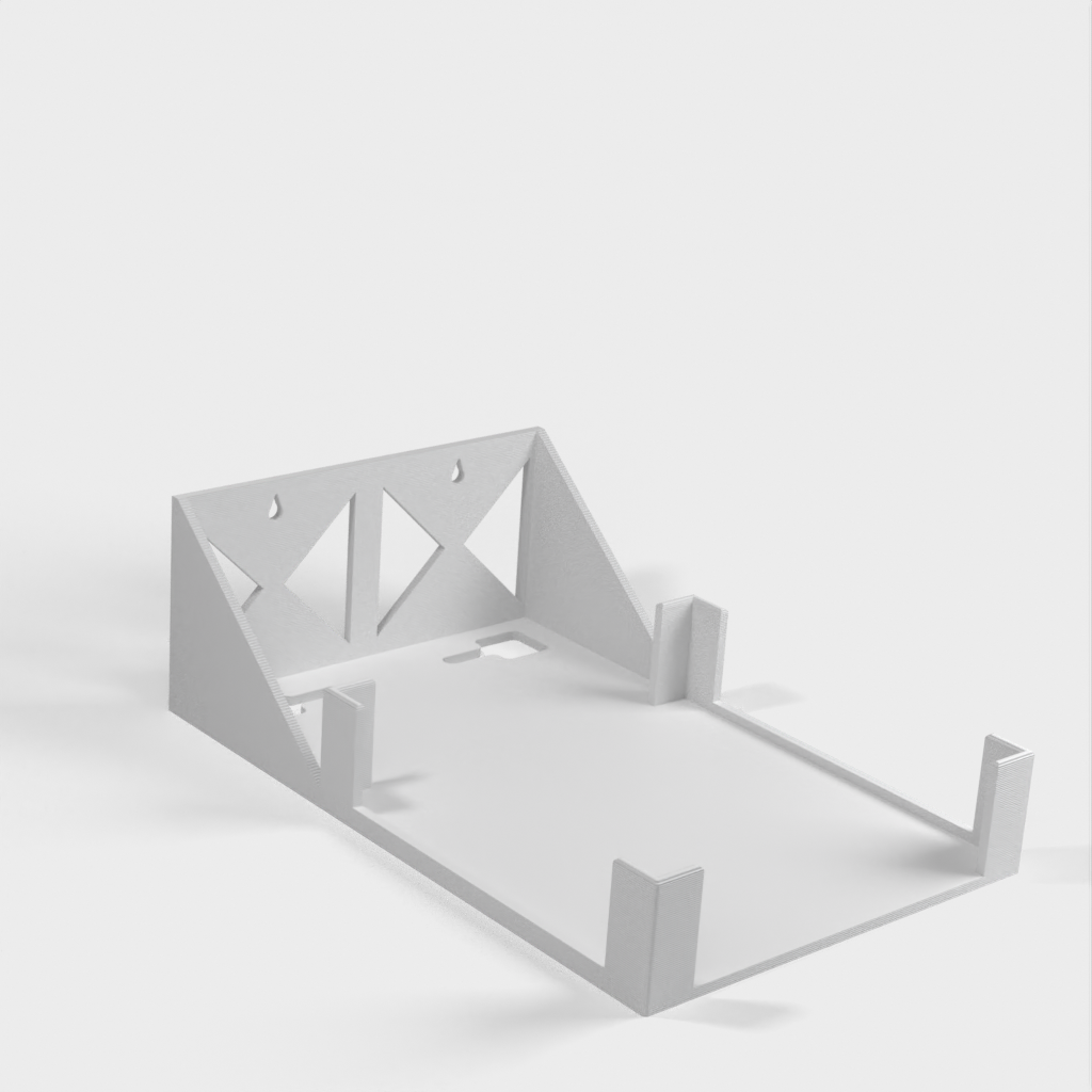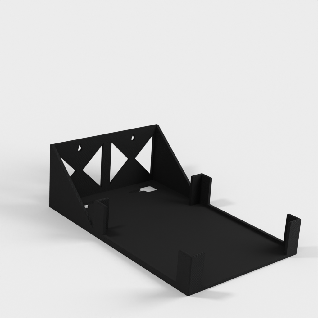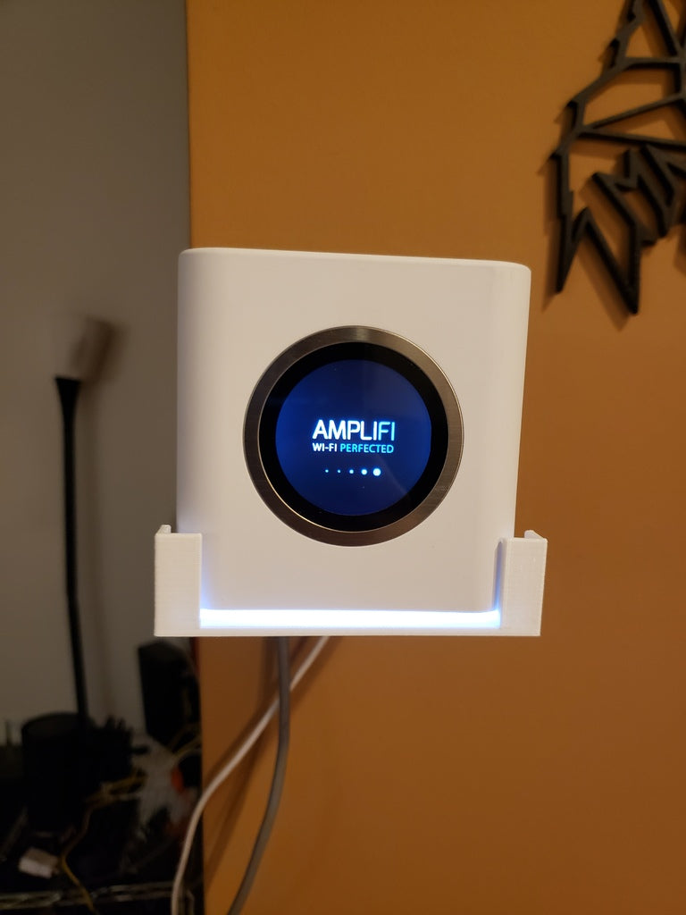 Este es un soporte de pared diseñado para el enrutador Ubiquiti AmpliFi HD. El soporte es fácil de imprimir e instalar y tiene funciones integradas para gestionar los cables. Su diseño es simple pero efectivo y funciona perfectamente para mantener su enrutador en su lugar.