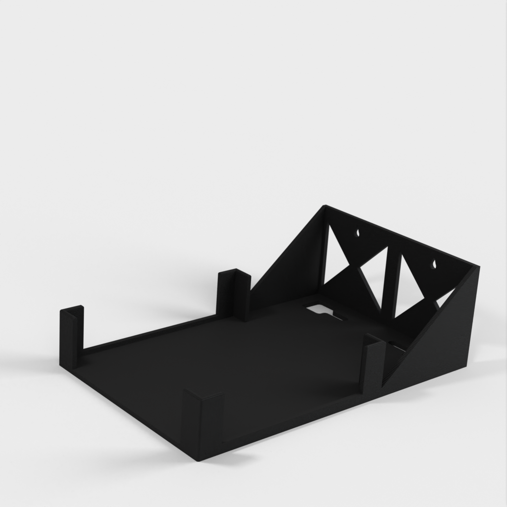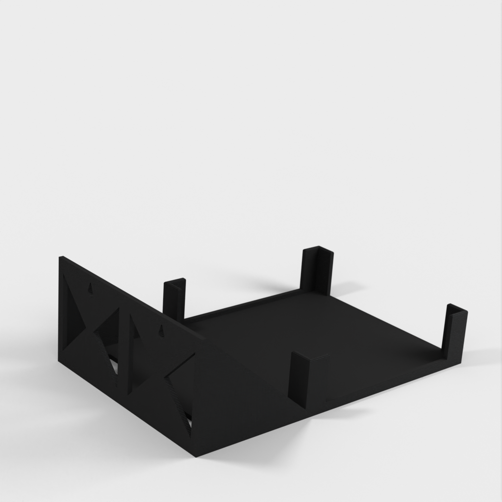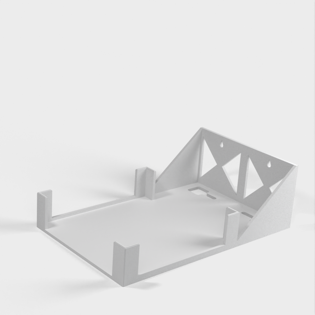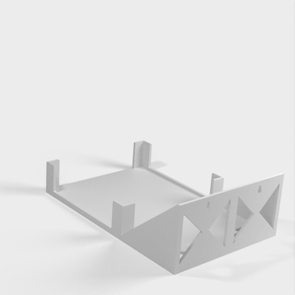 Este es un soporte de pared diseñado para el enrutador Ubiquiti AmpliFi HD. El soporte es fácil de imprimir e instalar y tiene funciones integradas para gestionar los cables. Su diseño es simple pero efectivo y funciona perfectamente para mantener su enrutador en su lugar.