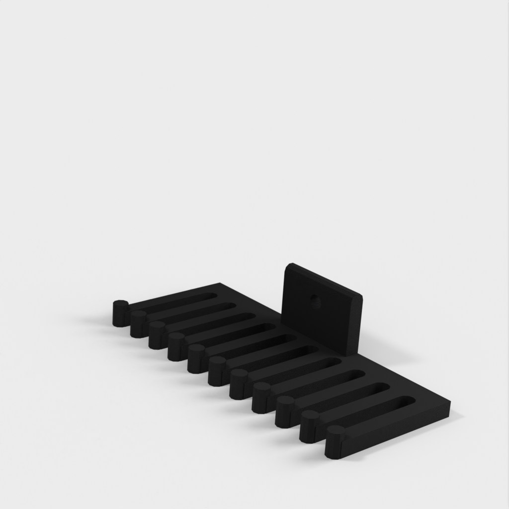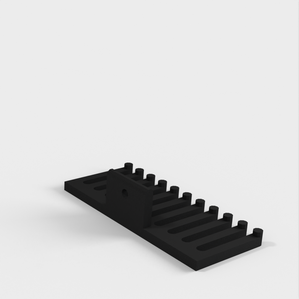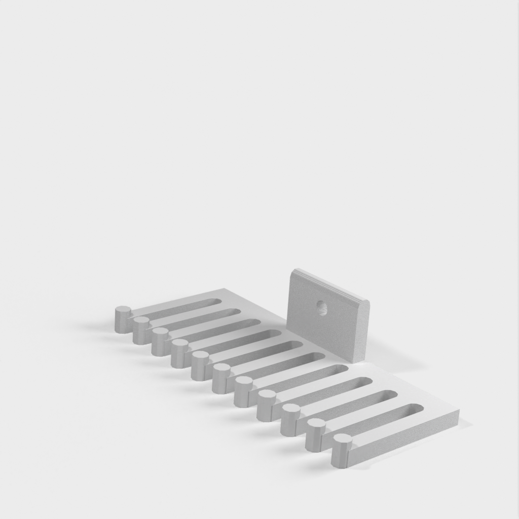 Soporte para cables que se puede fijar con un tornillo. El soporte para cables tiene forma de peine, donde el número de dientes del peine, la altura, la anchura, etc. se pueden personalizar según sea necesario. Se pueden organizar fácilmente muchos cables diferentes para crear un espacio de trabajo ordenado.