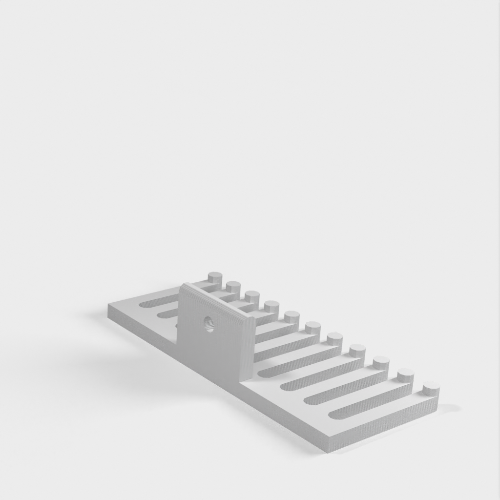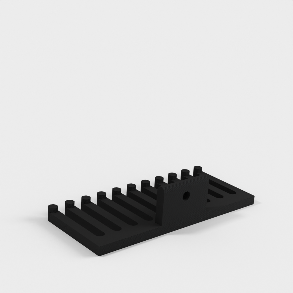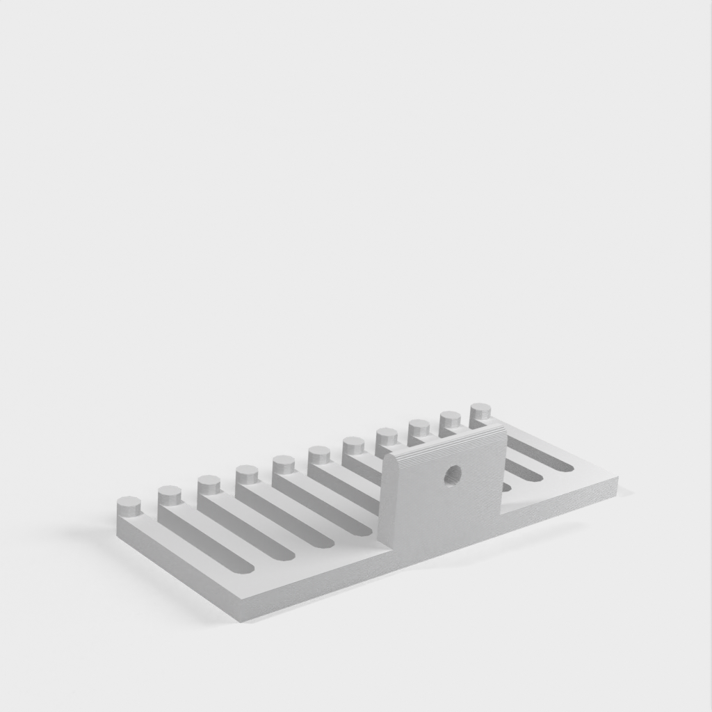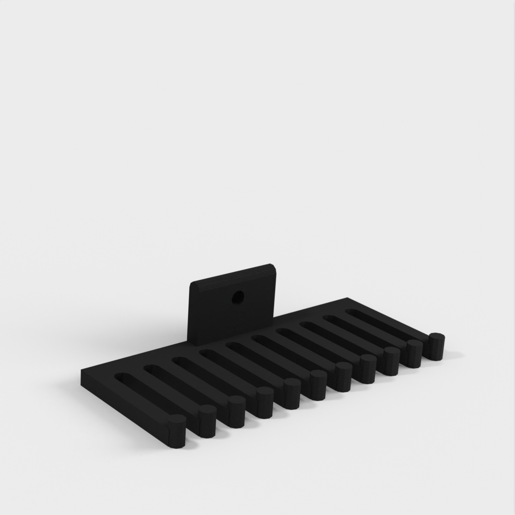 Soporte para cables que se puede fijar con un tornillo. El soporte para cables tiene forma de peine, donde el número de dientes del peine, la altura, la anchura, etc. se pueden personalizar según sea necesario. Se pueden organizar fácilmente muchos cables diferentes para crear un espacio de trabajo ordenado.