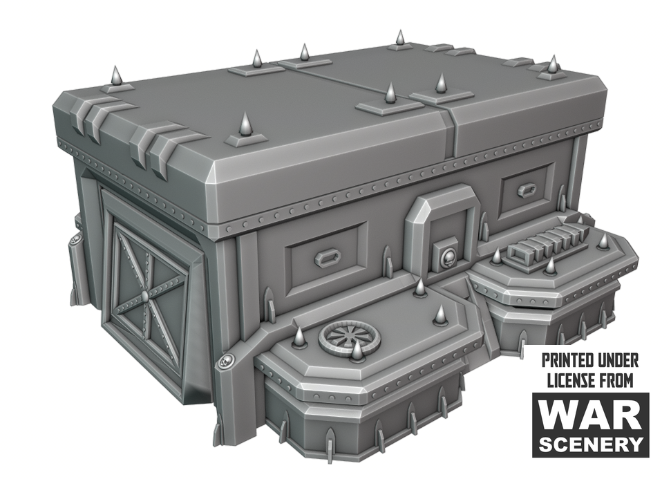 Oplev Vehicle Depot, et detaljeret terræn, der forbedrer dine Grimdark tabletop-spil. Denne del af Apocalypse Fortress-kollektionen skaber en realistisk baggrund med forladte køretøjer og lagerbygninger. Brug det til at introducere dynamiske og strategiske scenarier i dine wargames.