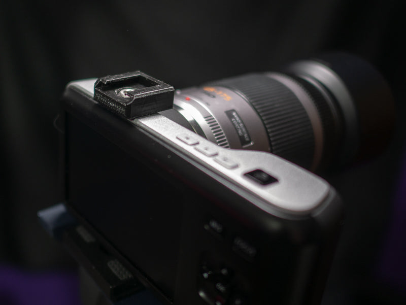 Esta parte específica está diseñada porque mi Blackmagic Design Pocket Cinema Camera no tiene un hotshoe/coldshoe. Sin embargo, tiene un punto de montaje superior 1/4-20. Así que en lugar de comprar uno de estos de Amazon y esperar a la entrega, diseñé uno rápidamente en Fusion 360.