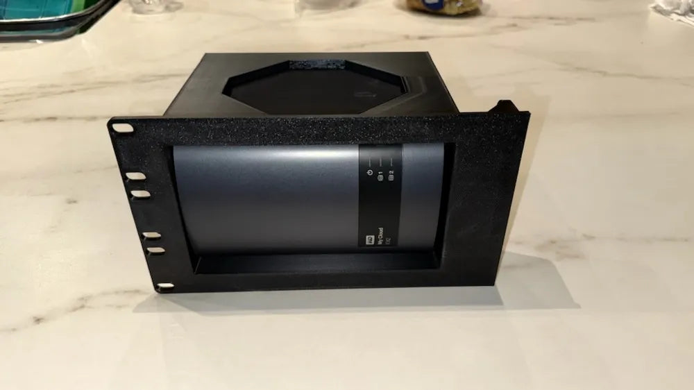 Dette 3U rackmount er designet til sikker montering af din WD My Cloud Ex2 i et 19 inch rack. Løsningen er ideel til at organisere dit homelab eller server setup og kræver M5 skruer til installation. Det sikrer en stabil og professionel opbevaring af din enhed.