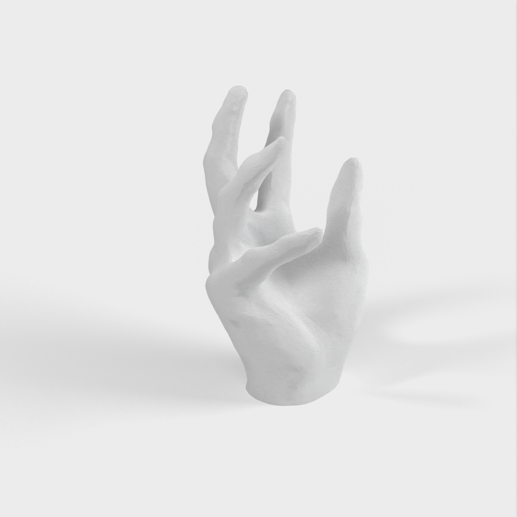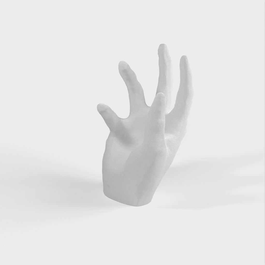 iPhone Hand es una solución perfecta para guardar tu smartphone en tu escritorio. Esta réplica escaneada en 3D de una mano está diseñada para sostener tu iPhone o cualquier otro smartphone. Está elaborada para una impresión óptima sin material de soporte.