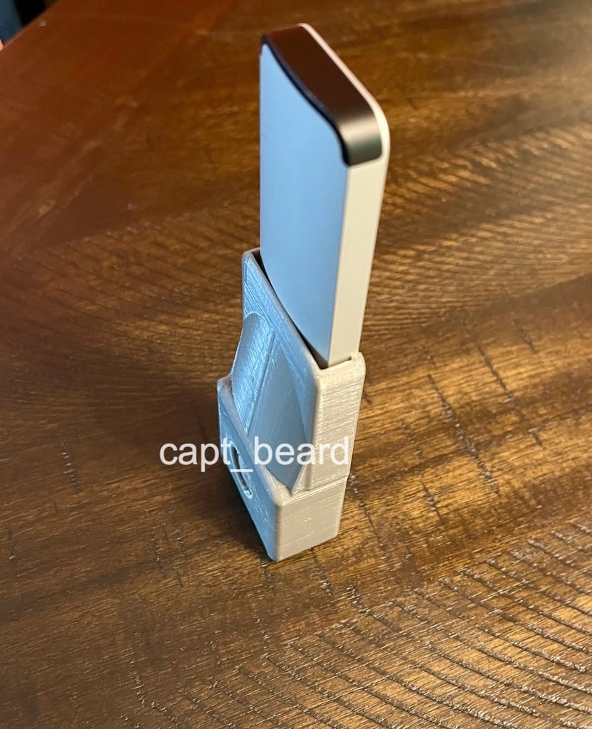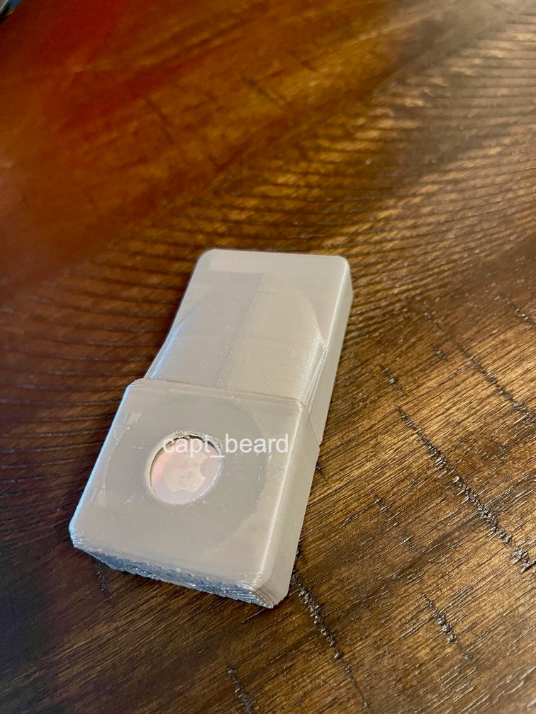 El Apple TV Remote AirTag Case es un soporte AirTag especialmente diseñado para el nuevo (2021) Siri Remote para Apple TV. El AirTag encaja perfectamente en la parte redonda de la base. Hay un orificio en la parte posterior para extraer fácilmente el AirTag. El mando se desliza y se mantiene en su sitio por fricción.
