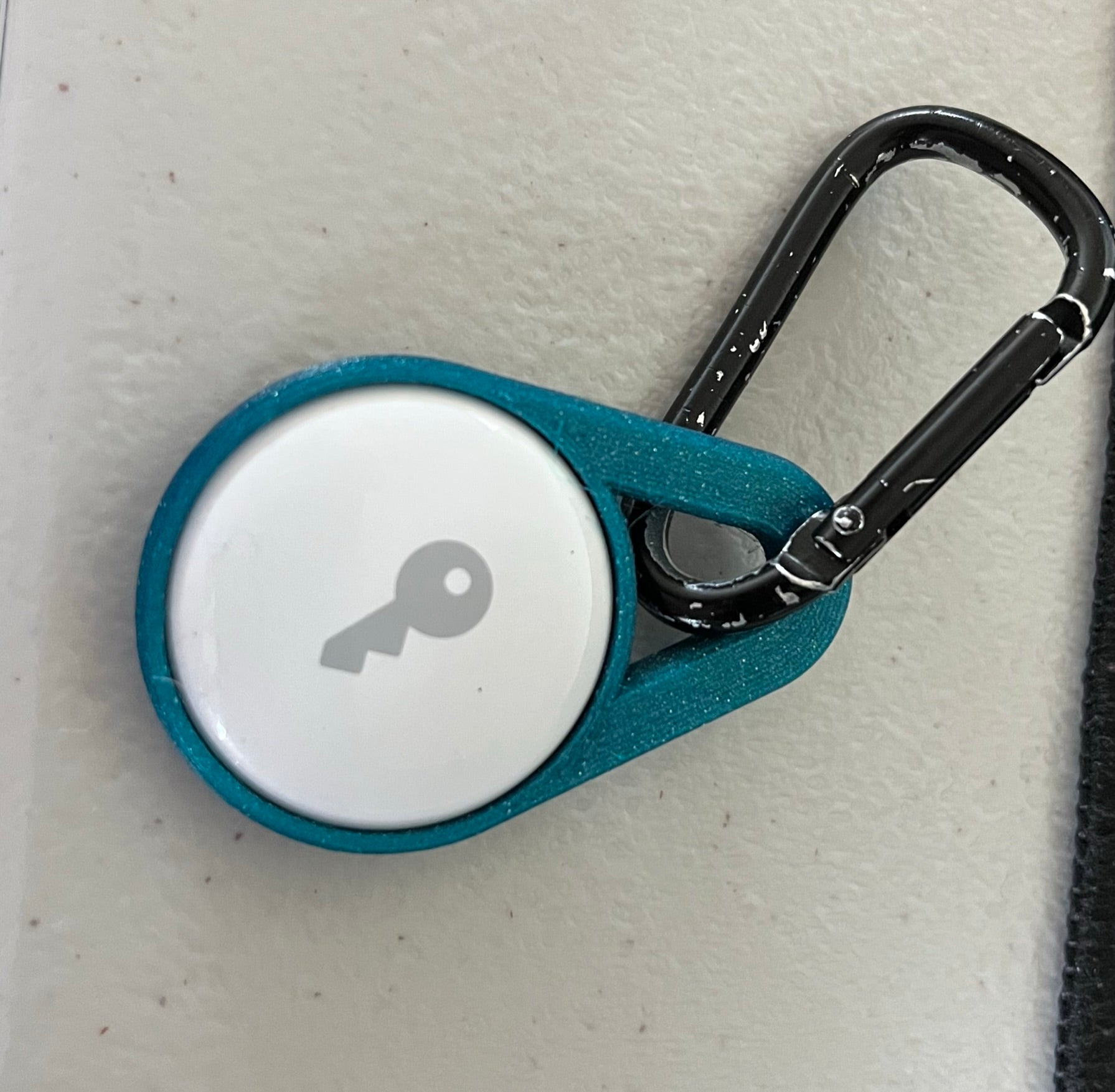 Funda para llaveros. Bueno para mosquetones o paracord que puedes atar tu mismo. Puede necesitar ser impreso en una escala diferente para adaptarse a su airtag correctamente. Al 100,5%, el airtag encaja perfectamente en el estuche sin quedar ni demasiado suelto ni demasiado apretado. Perfecto para llevar un control de tus llaves con tu airtag.