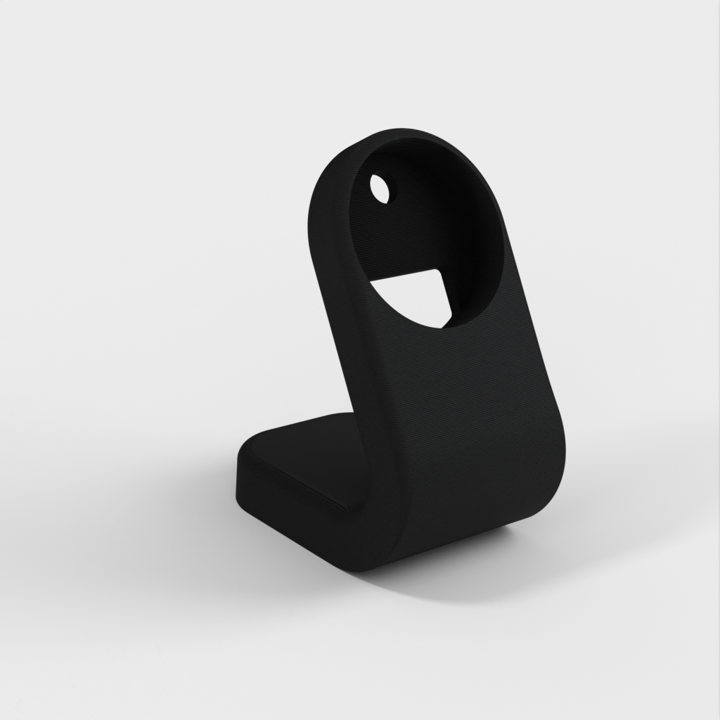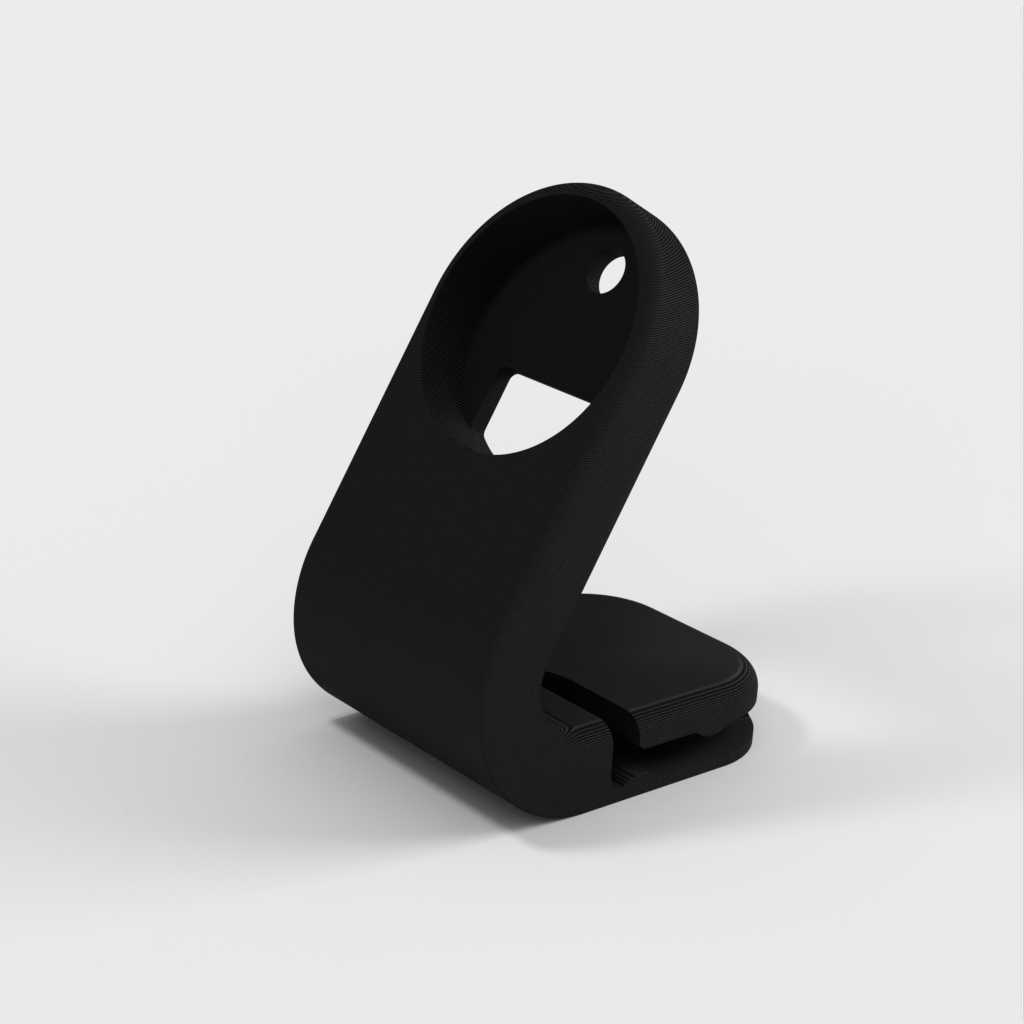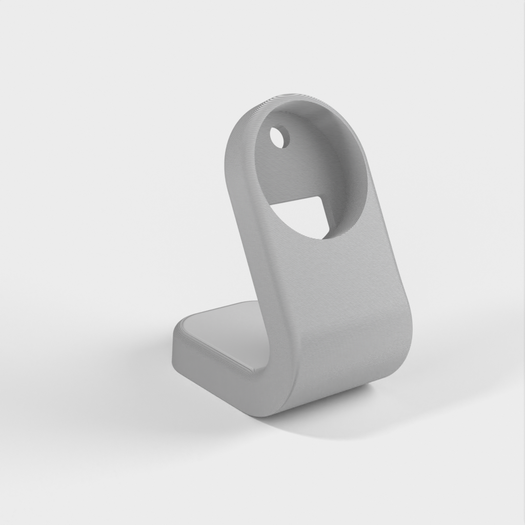 Una sencilla base de carga para Apple Watch que se fija a la pared con cinta adhesiva de doble cara. La base te ofrece una forma cómoda y organizada de cargar tu Apple Watch a la vez que exhibe el reloj en la pared.