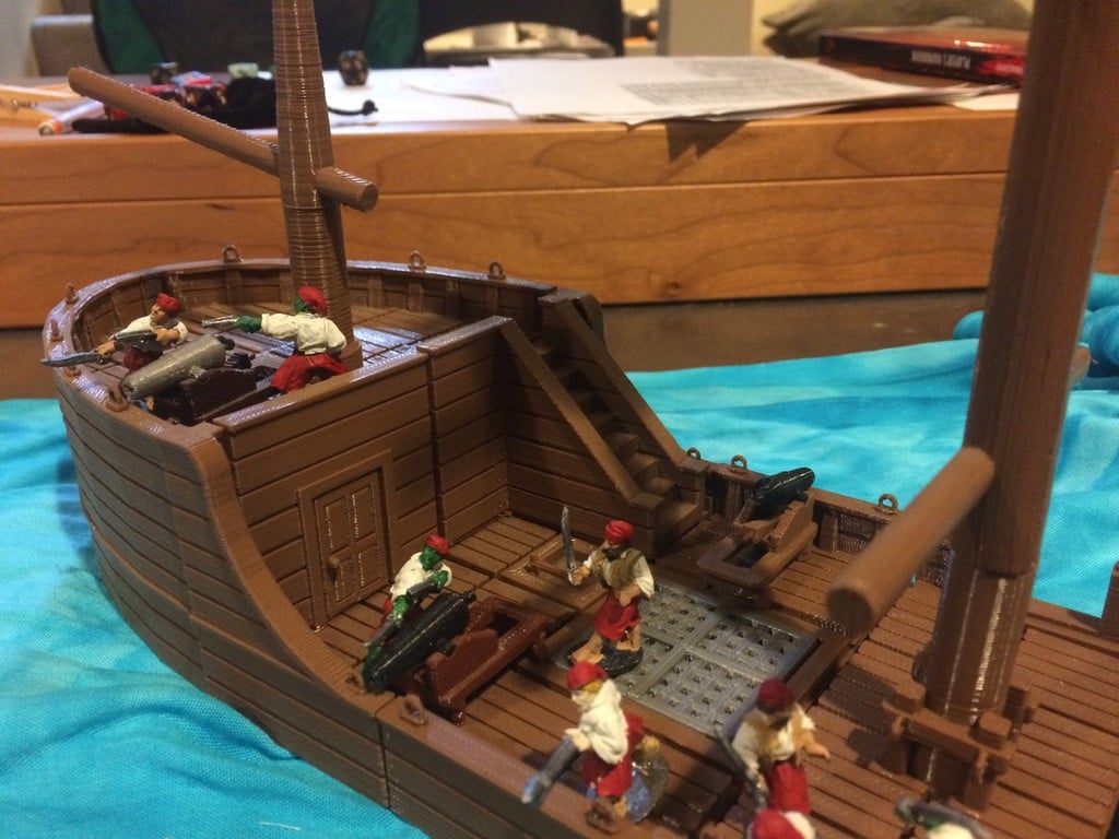 El kit incluye baldosas y elementos de soporte diseñados a medida que facilitan la construcción tanto de castillos de proa como de popa con diferencias de altura realistas. Las paredes interiores, las puertas y las escaleras se pueden integrar fácilmente, creando una experiencia inmersiva para los jugadores que navegan por las diferentes cubiertas del barco.