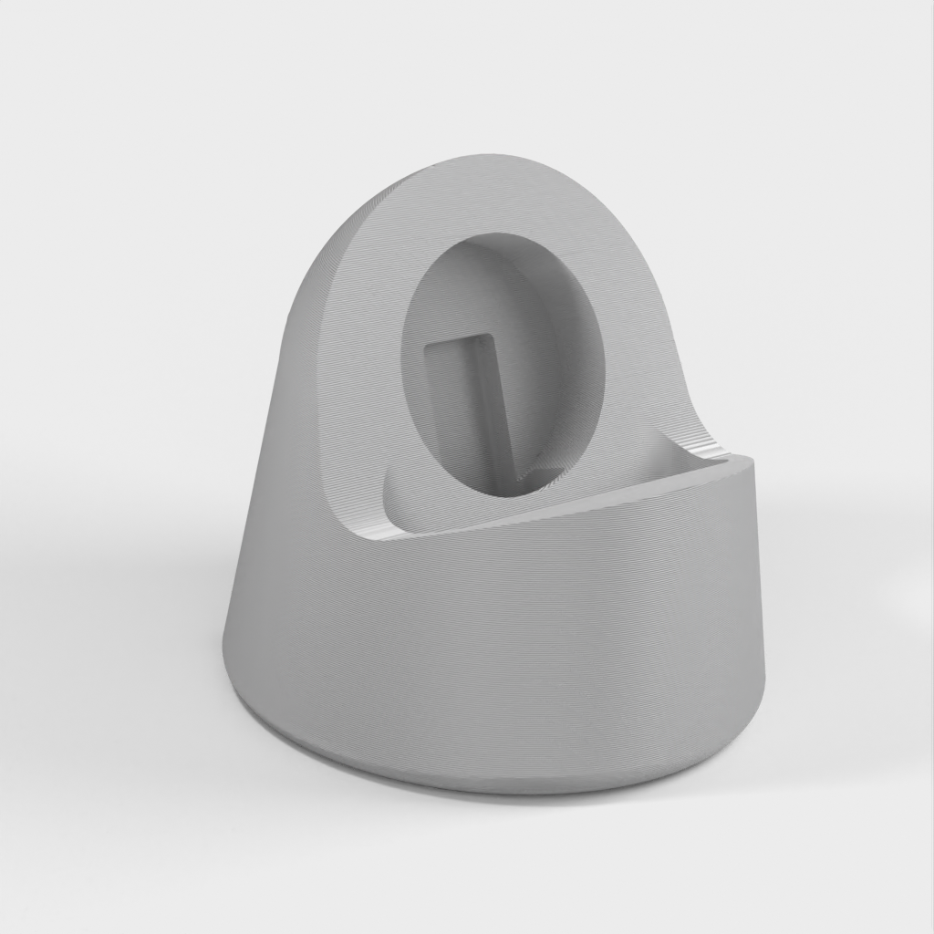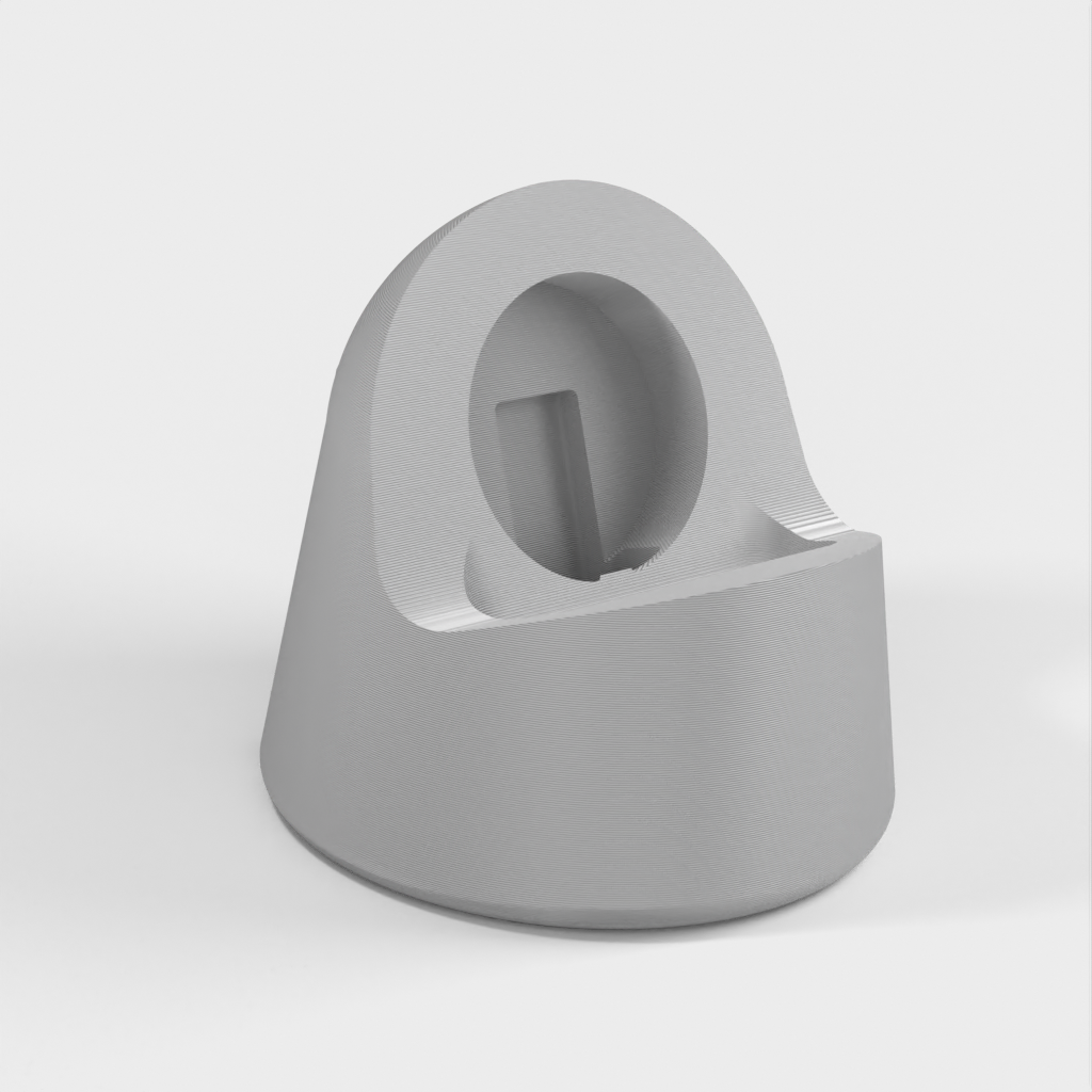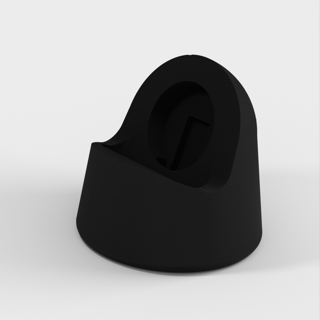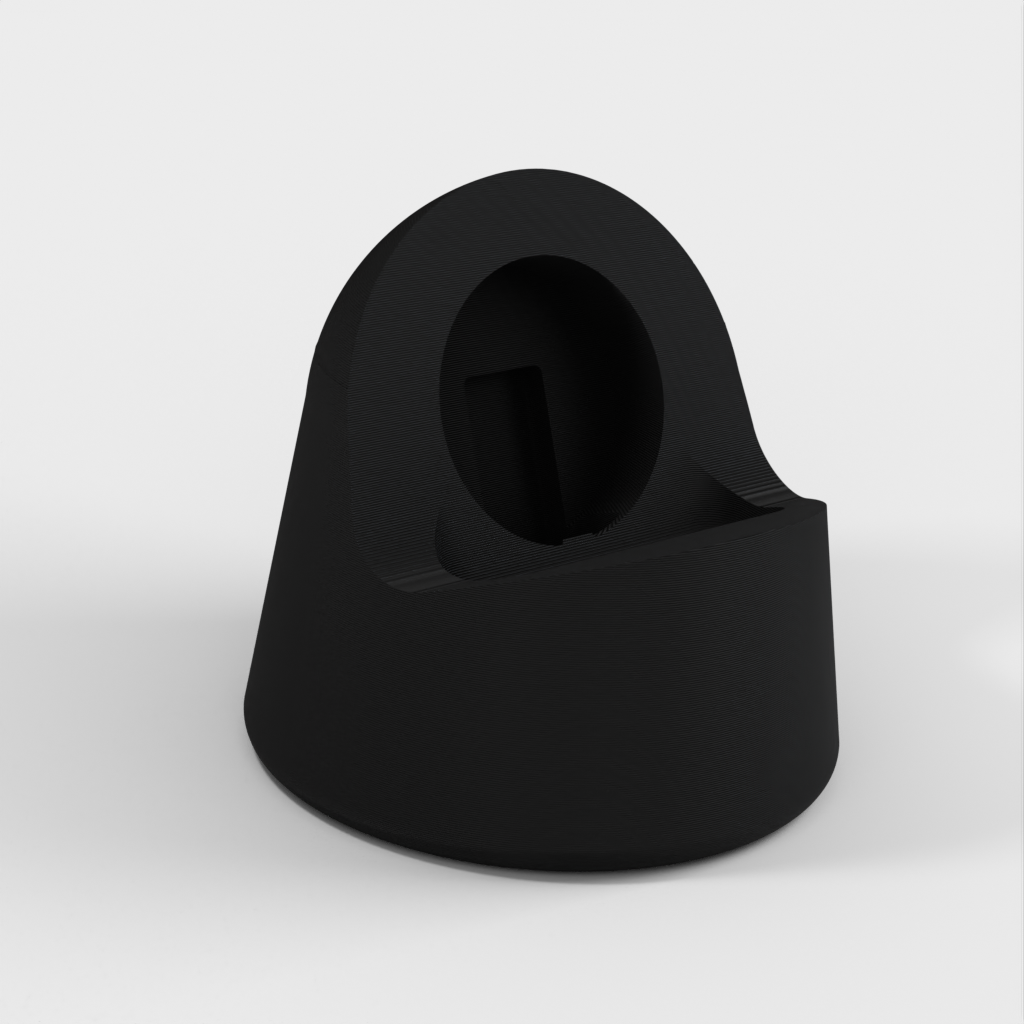 Esta es una base de carga para un Apple Watch de 38 mm. La base está diseñada para adaptarse y cargar tu reloj a la perfección y te permite extraer fácilmente el cable de carga a través de una discreta ranura en la parte inferior. También está diseñado con canales de cable más grandes para una mayor compatibilidad.