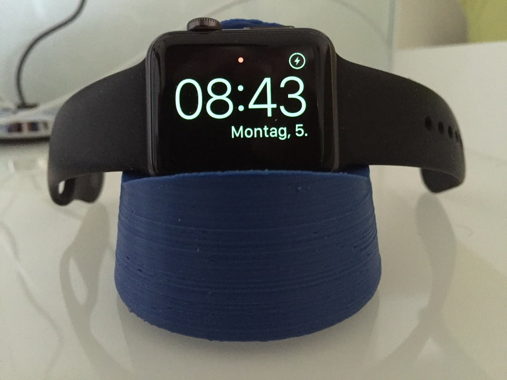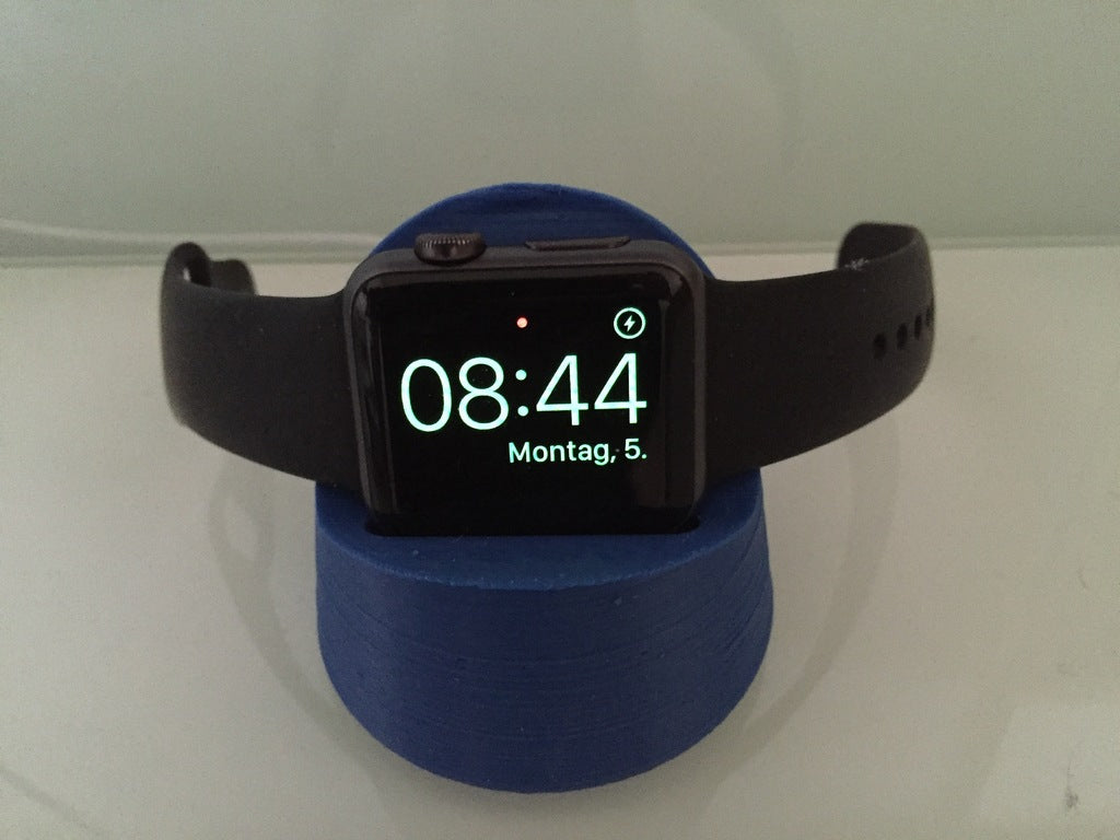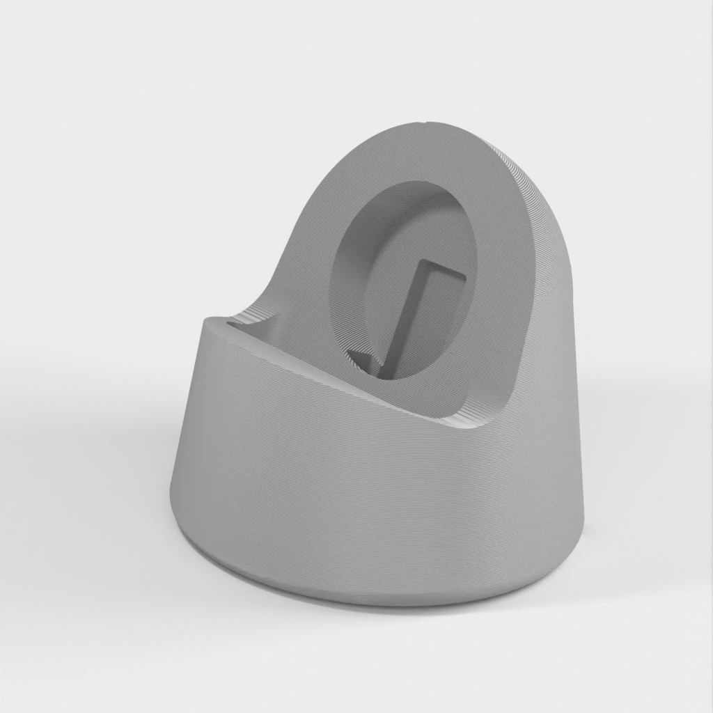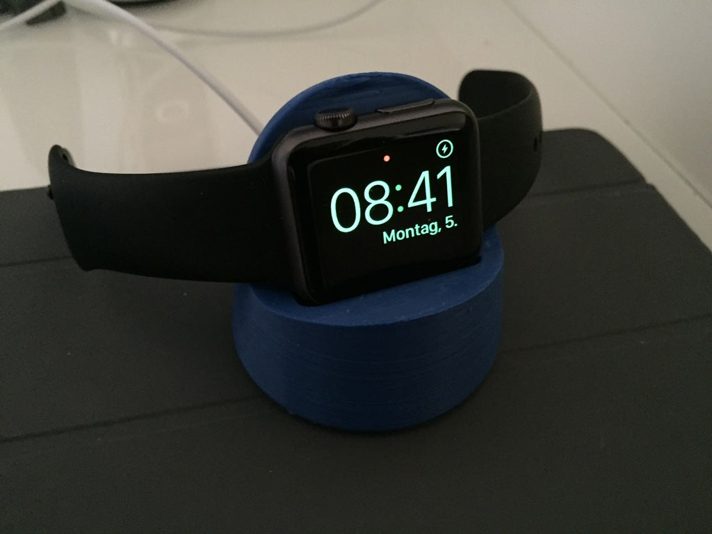 Esta es una base de carga para un Apple Watch de 38 mm. La base está diseñada para adaptarse y cargar tu reloj a la perfección y te permite extraer fácilmente el cable de carga a través de una discreta ranura en la parte inferior. También está diseñado con canales de cable más grandes para una mayor compatibilidad.