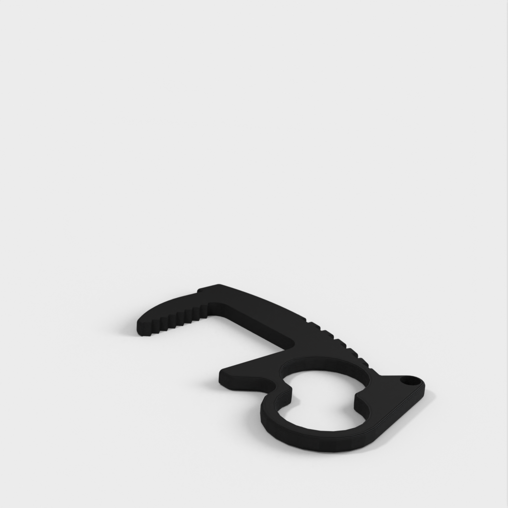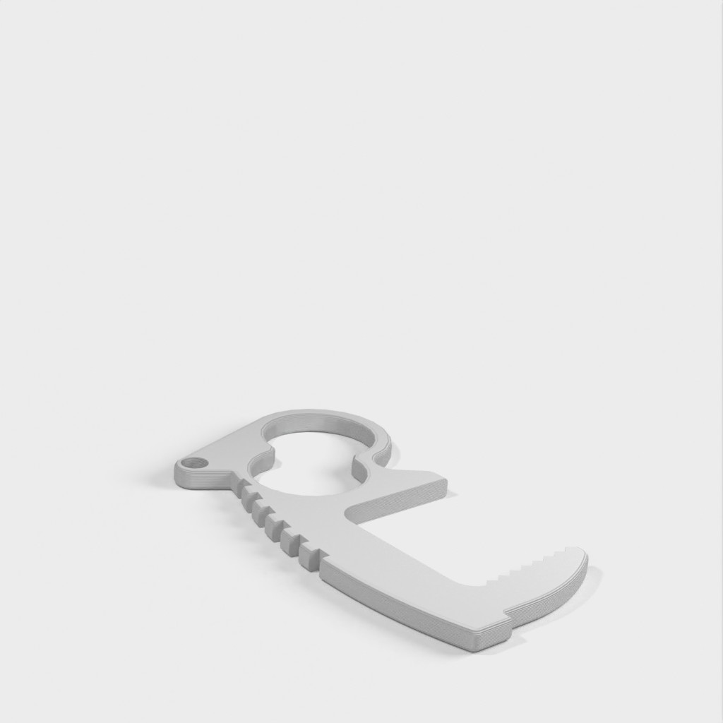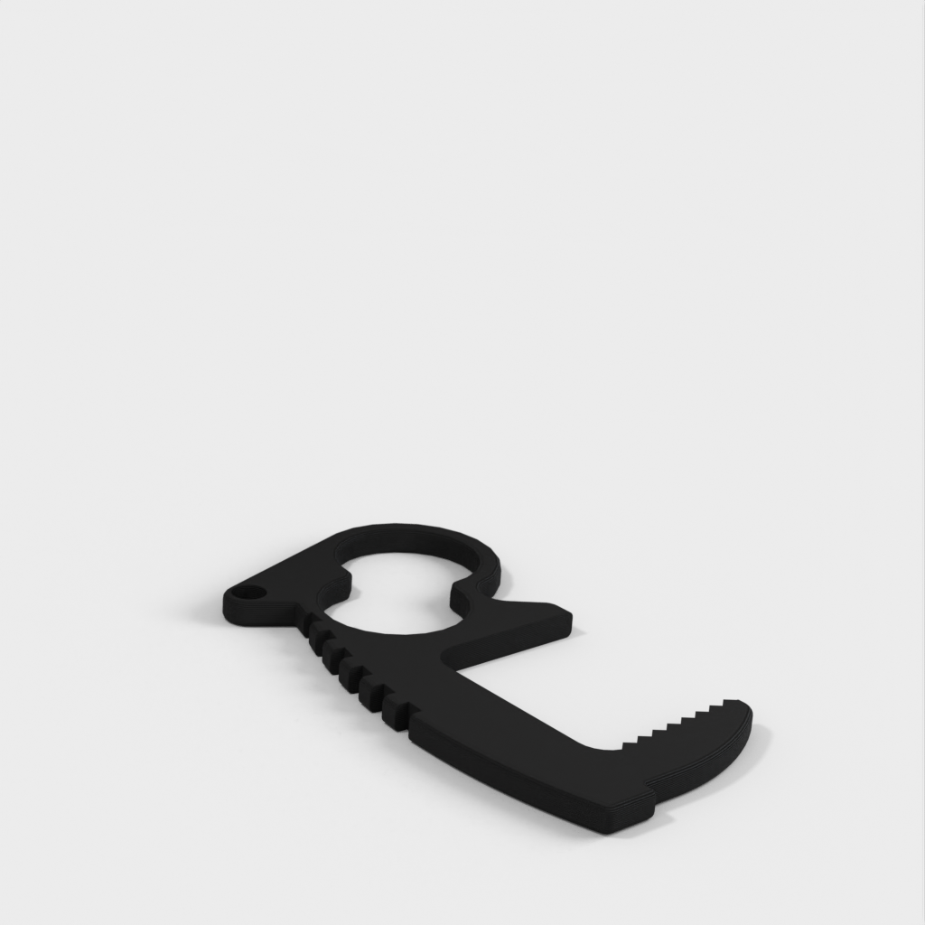 Evite el contacto directo con picaportes, interruptores, teclados y muchos otros objetos con este llavero abrepuertas sin contacto. Con su exclusivo diseño de dos orificios, le permite tener cuatro estilos de agarre diferentes. Las rejillas superiores y los agarres para el pulgar proporcionan más apalancamiento que otros diseños, mientras que la superficie dentada interna proporciona la fricción necesaria para ser utilizable. Cada abridor pesa sólo 4 gramos, lo que los hace ideales para llaveros, uso en el bolsillo, bolsas para portátiles, sin añadir ninguna diferencia notable de peso. La ubicación del ojo de la cerradura está diseñada para sujetar las llaves con seguridad en la mano y proporcionar un mayor efecto de palanca. También funciona bien en el extremo de un cordón.
