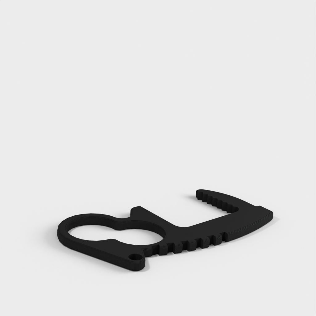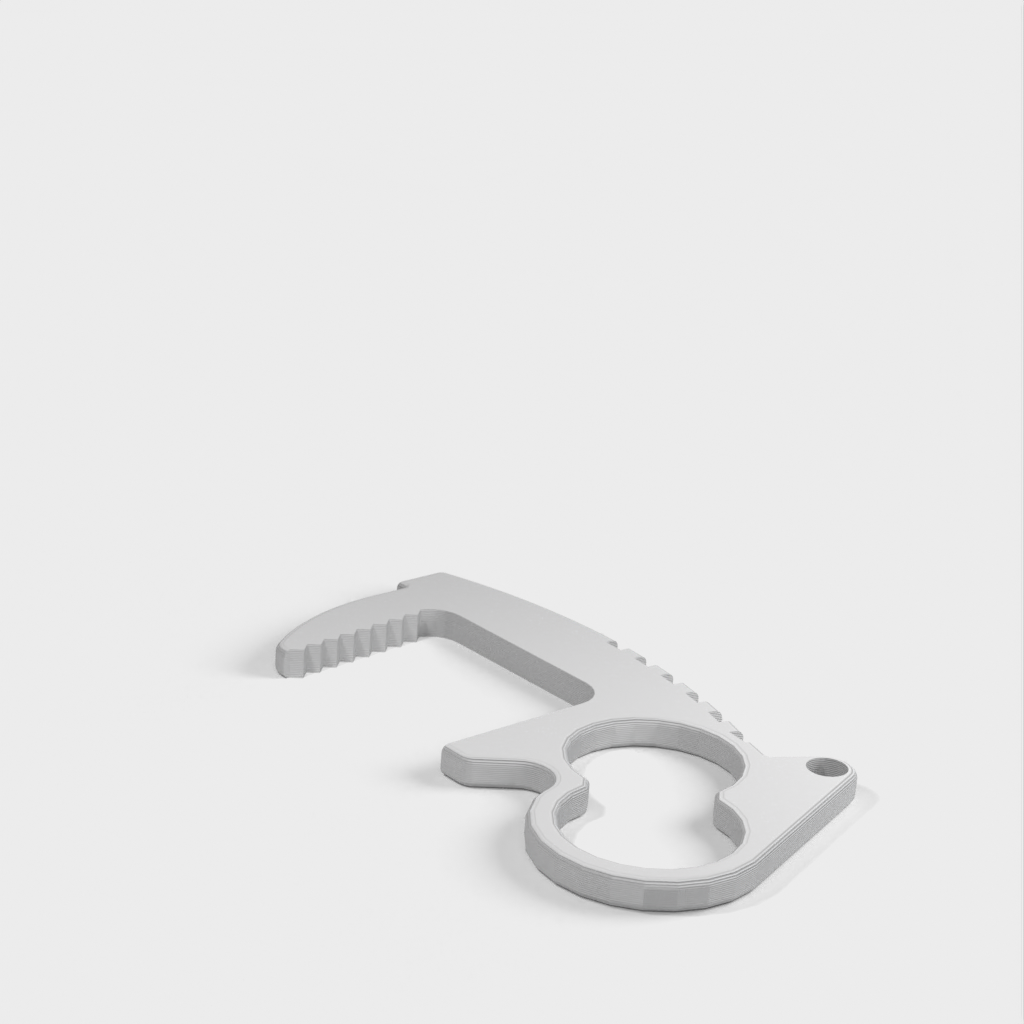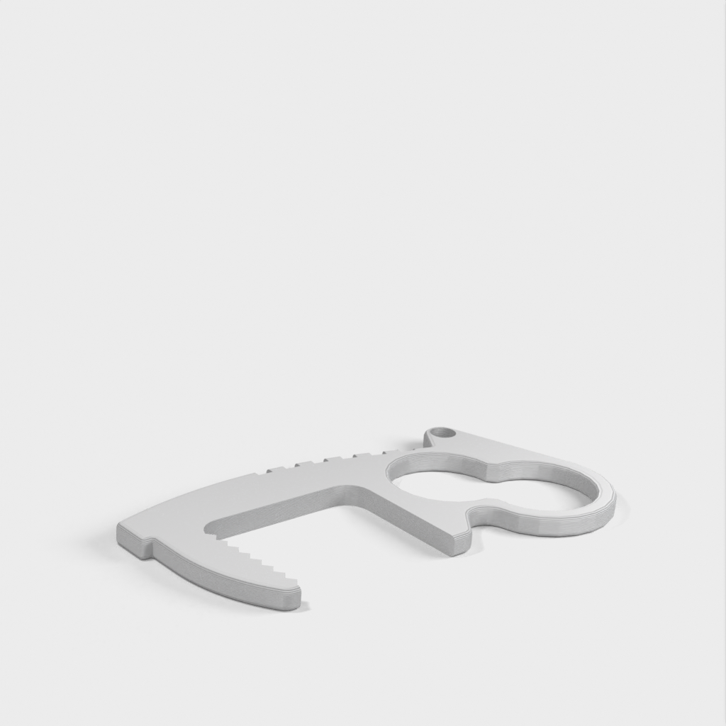 Evite el contacto directo con picaportes, interruptores, teclados y muchos otros objetos con este llavero abrepuertas sin contacto. Con su exclusivo diseño de dos orificios, le permite tener cuatro estilos de agarre diferentes. Las rejillas superiores y los agarres para el pulgar proporcionan más apalancamiento que otros diseños, mientras que la superficie dentada interna proporciona la fricción necesaria para ser utilizable. Cada abridor pesa sólo 4 gramos, lo que los hace ideales para llaveros, uso en el bolsillo, bolsas para portátiles, sin añadir ninguna diferencia notable de peso. La ubicación del ojo de la cerradura está diseñada para sujetar las llaves con seguridad en la mano y proporcionar un mayor efecto de palanca. También funciona bien en el extremo de un cordón.