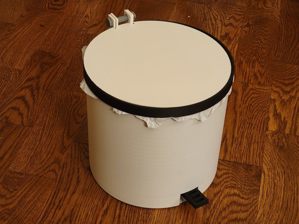 Esta es una papelera imprimible accionada por pedal. La capacidad es de aproximadamente 7,5 litros / 2 galones.