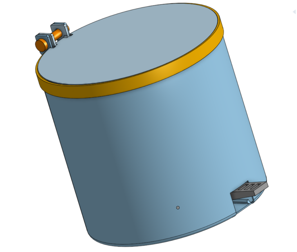 El diseño cuenta con un mecanismo de pedal para abrir la tapa y un anillo de retención de bolsas extraíble para sujetar una bolsa de basura y facilitar el vaciado. La tapa se abre aproximadamente a 45-50 grados.
