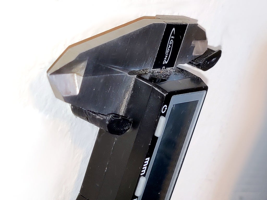 Soporte de pared único para dispositivos de calibración. Este soporte es compatible con la mayoría de las marcas, ya sean digitales o de dial. La imagen muestra un calibrador digital EZ Cal.