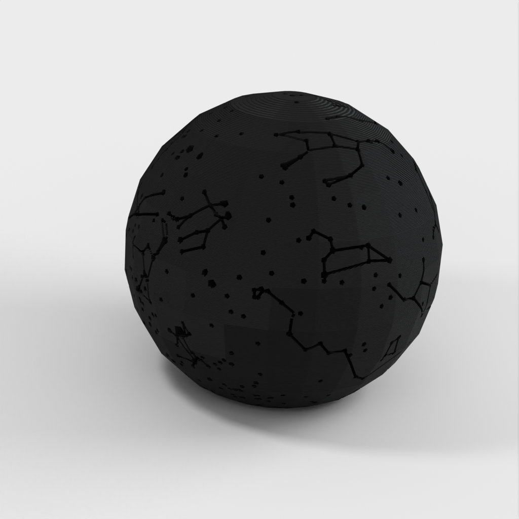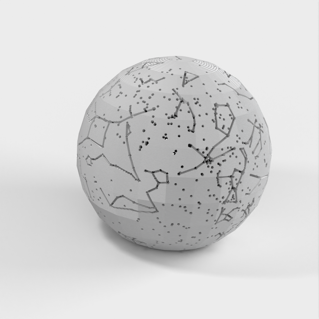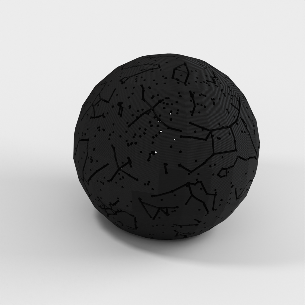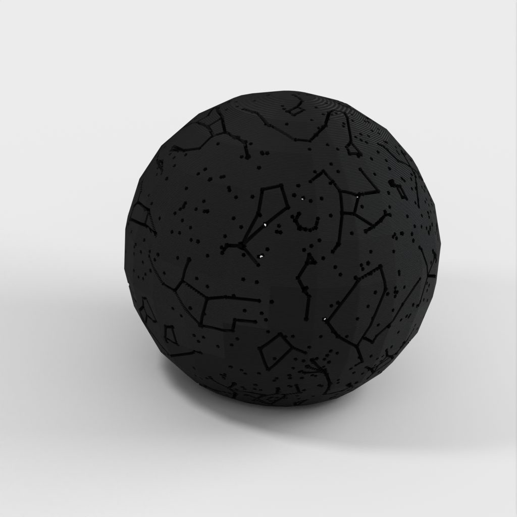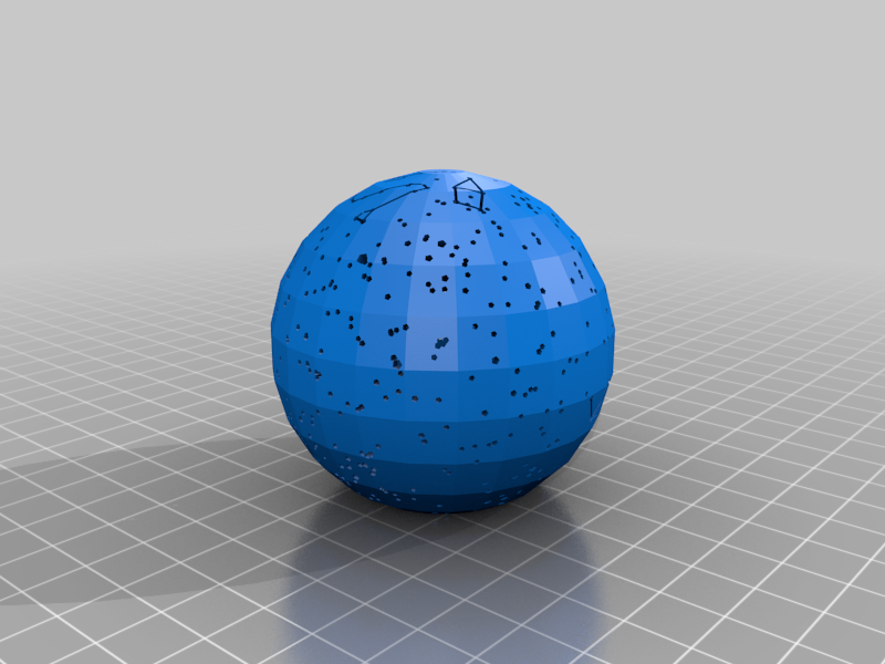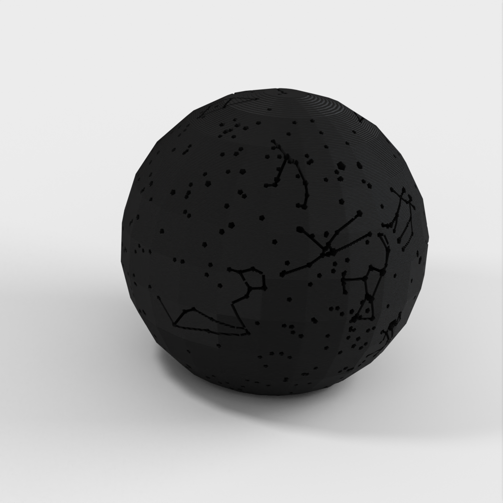 Este producto es una extensión de los modelos de la Esfera Celeste y puede generar archivos STL para una esfera celeste. Con Openscad, puede cambiar muchos parámetros y producir un modelo 3D de la esfera celeste, que puede incluir más de 1700 de las estrellas más brillantes y hasta 50 constelaciones. El modelo también incluye planos para una montura de tipo ecuatorial, completa con suministro para iluminación LED en el interior de la esfera.