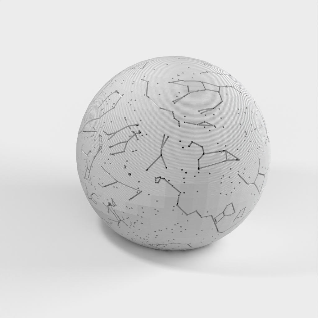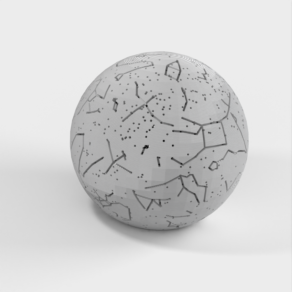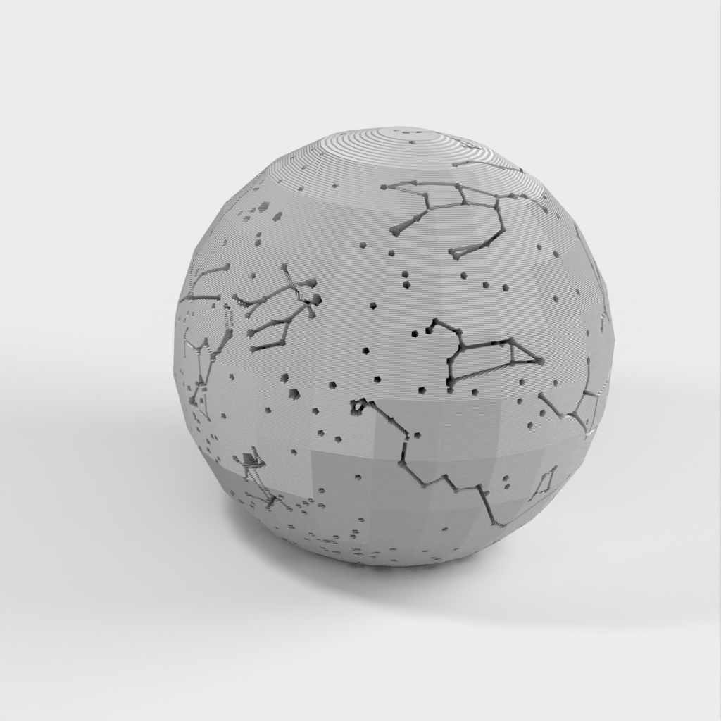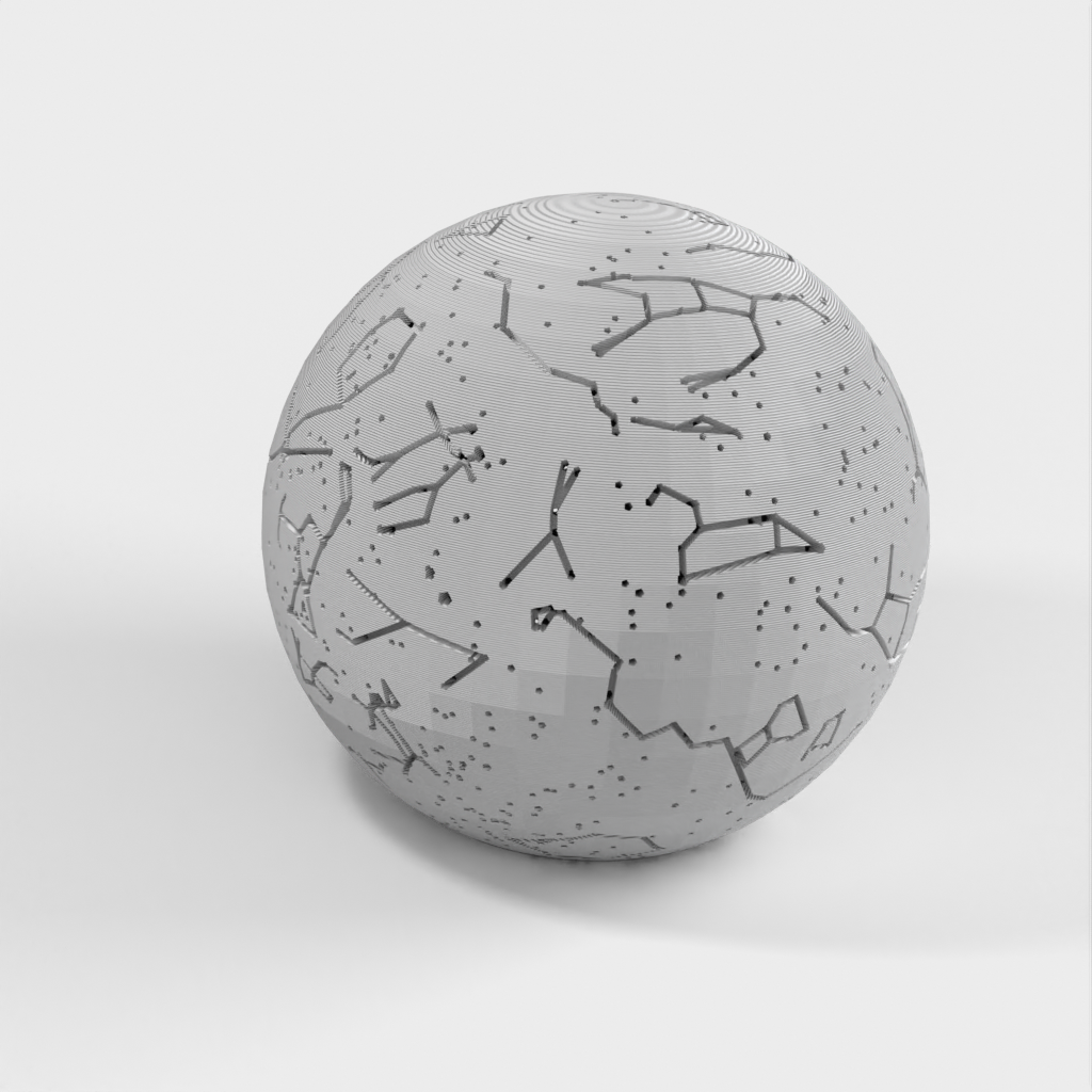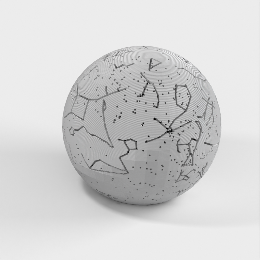 Este producto es una extensión de los modelos de la Esfera Celeste y puede generar archivos STL para una esfera celeste. Con Openscad, puede cambiar muchos parámetros y producir un modelo 3D de la esfera celeste, que puede incluir más de 1700 de las estrellas más brillantes y hasta 50 constelaciones. El modelo también incluye planos para una montura de tipo ecuatorial, completa con suministro para iluminación LED en el interior de la esfera.