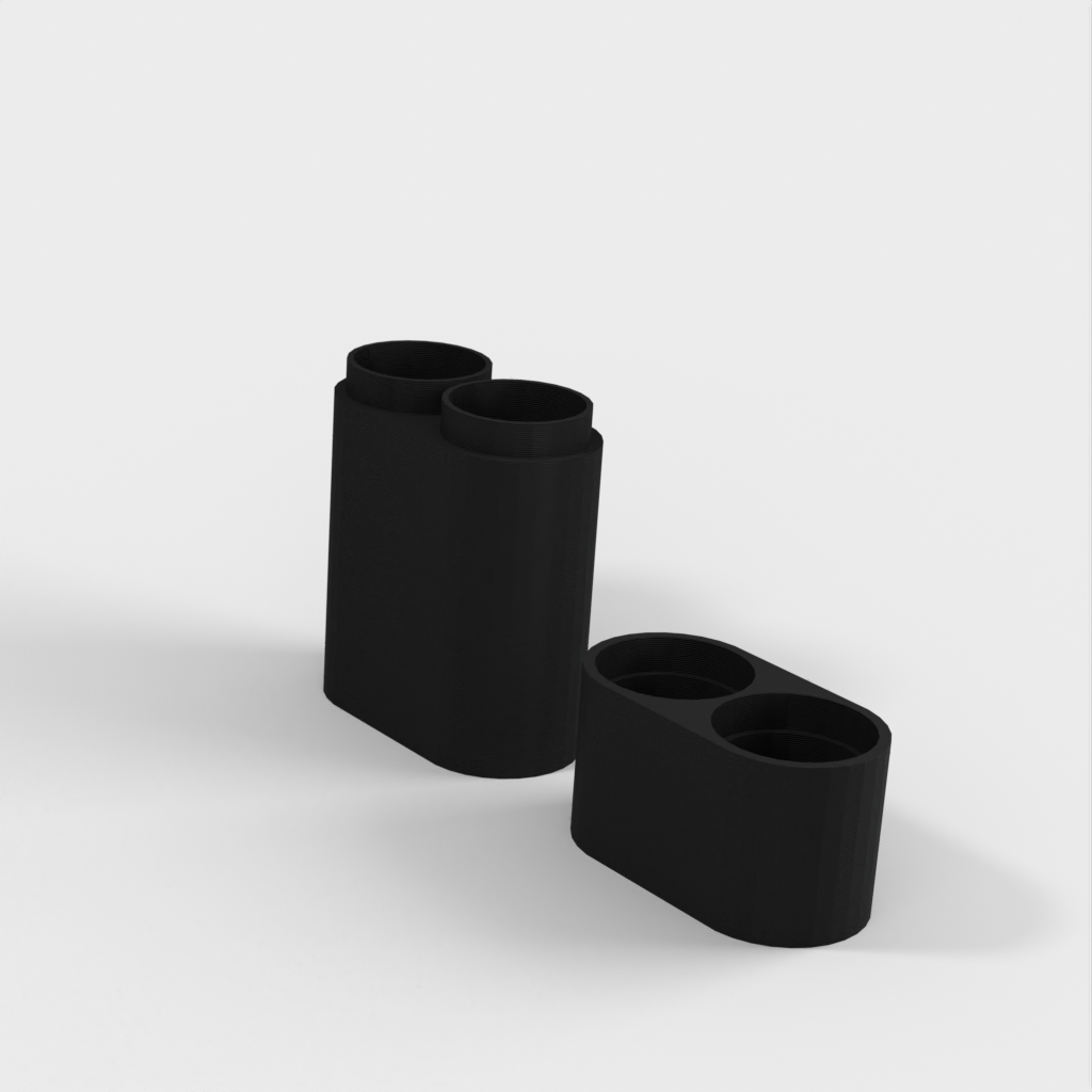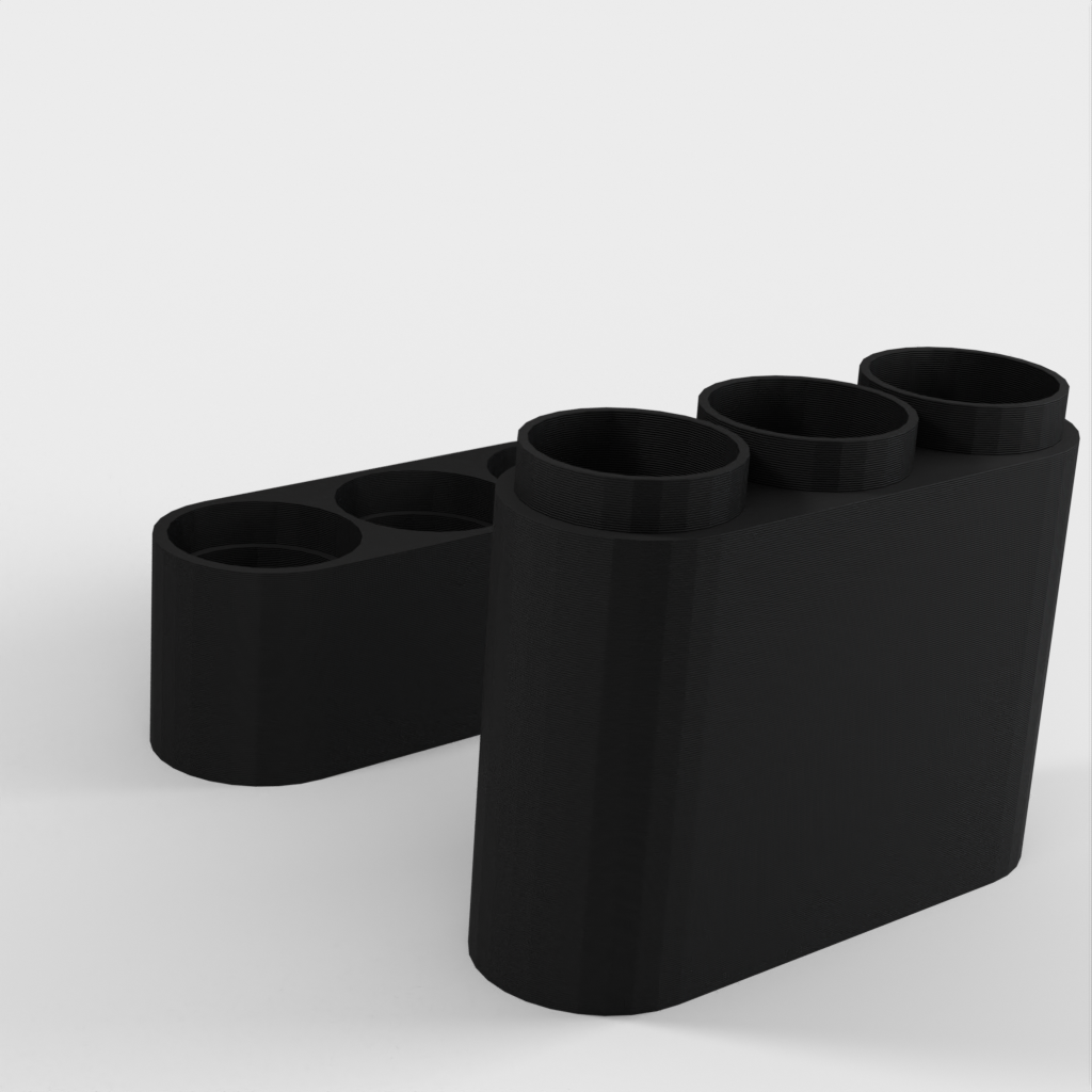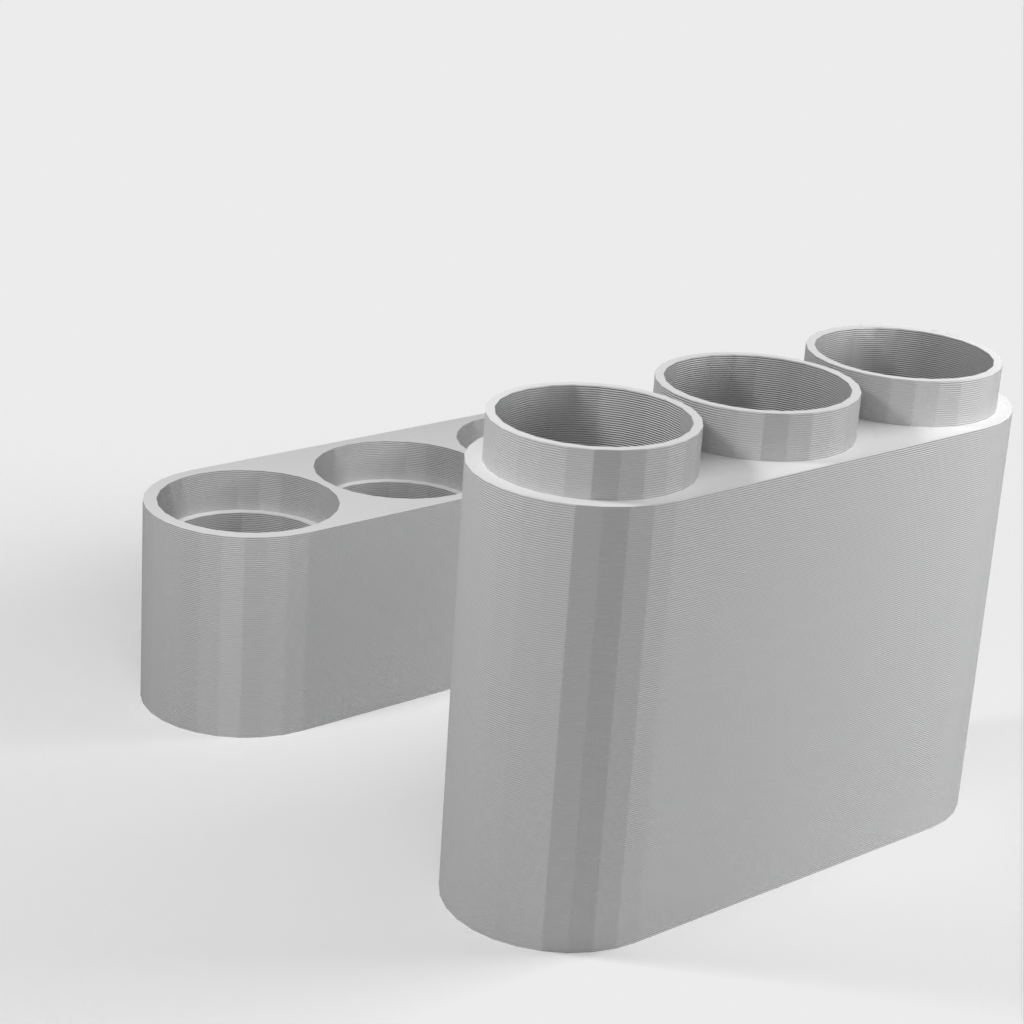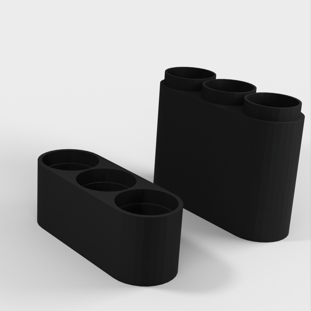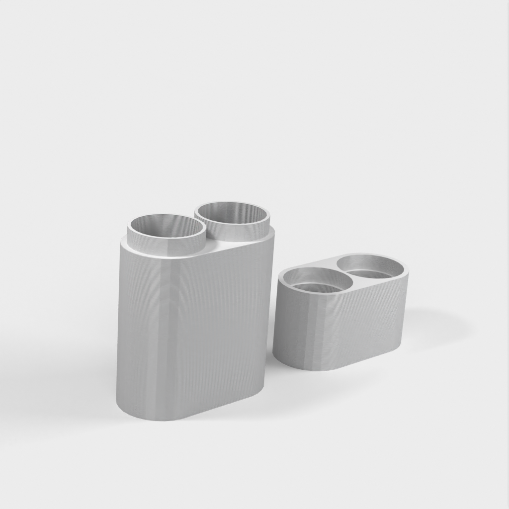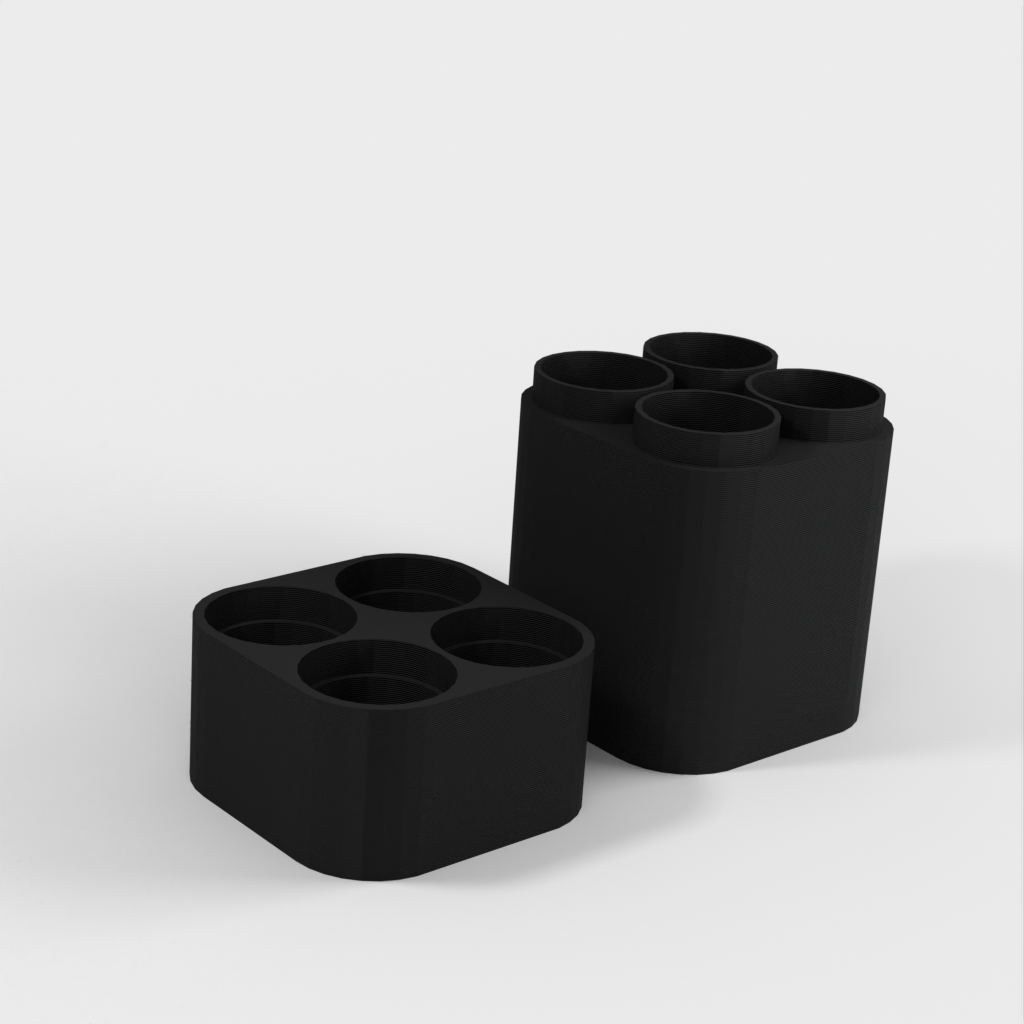 El soporte de viaje para pilas AA y AAA le ayuda a organizar sus pilas de forma eficaz. Este soporte puede contener 2, 4 ó 3 pilas, ya sea en una matriz lineal o 2x2. El soporte consta de una pieza superior y otra inferior, y sigue una sencilla regla empírica: Si la pequeña hendidura está orientada hacia arriba, la pila está cargada.