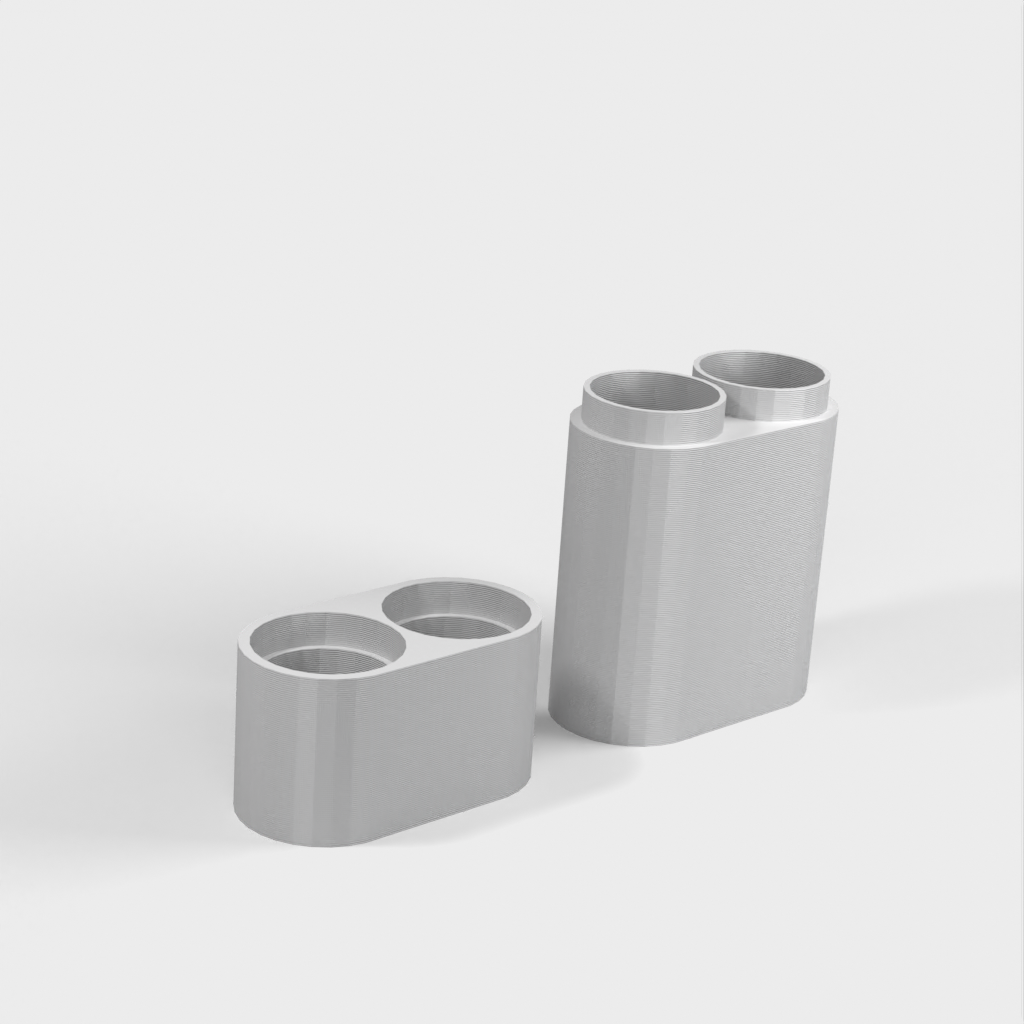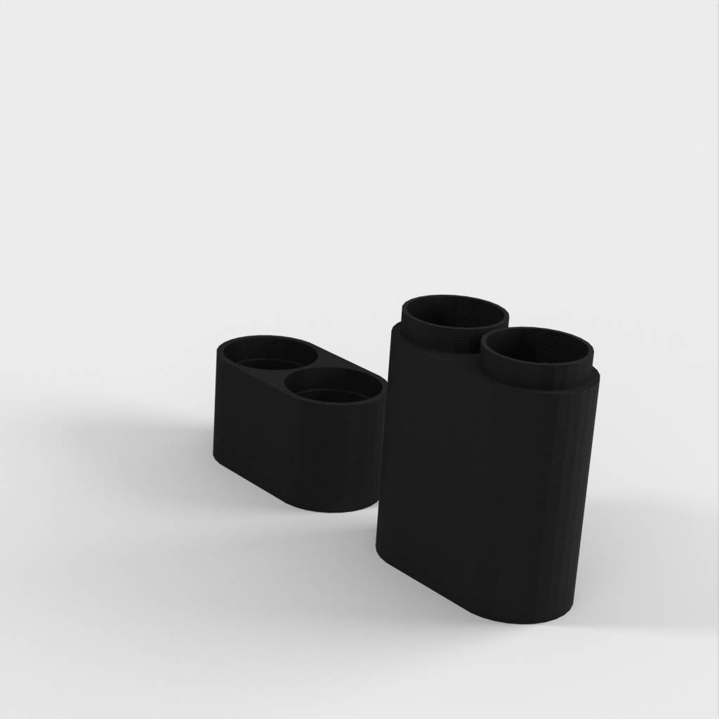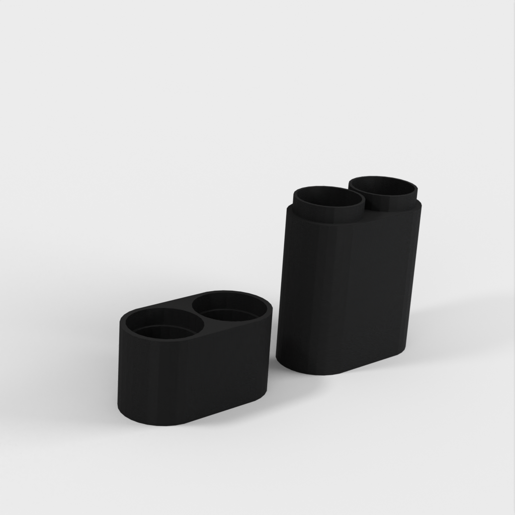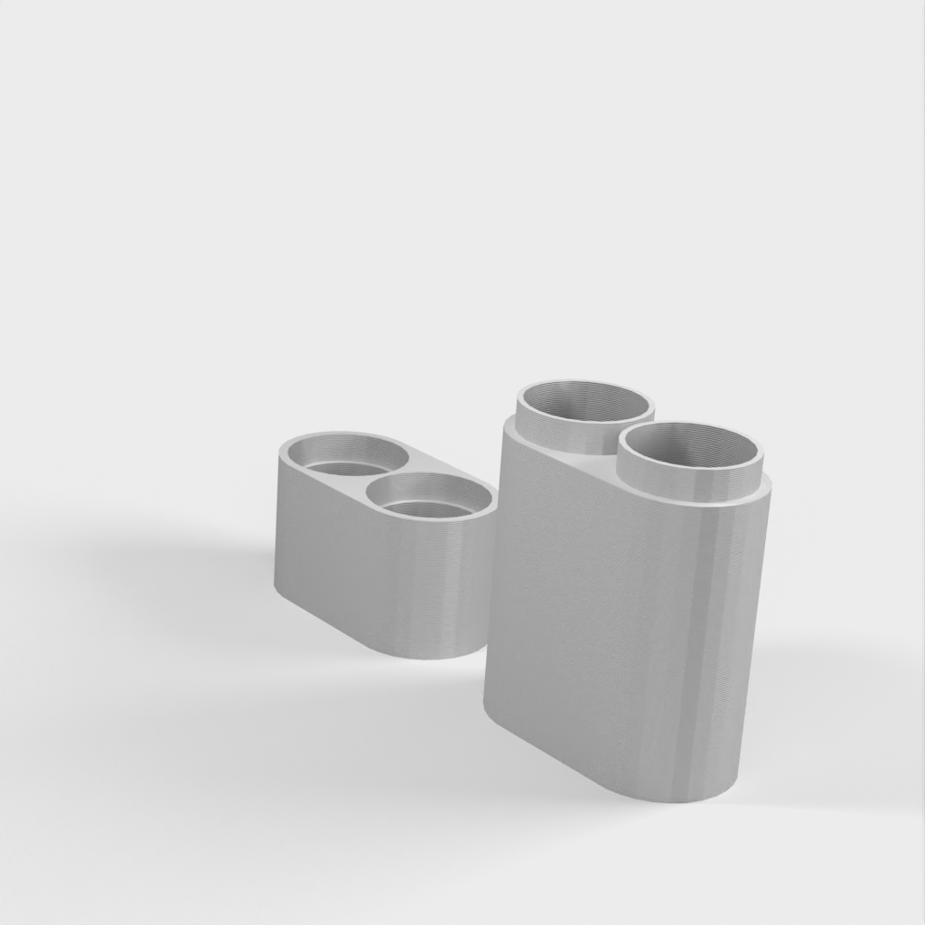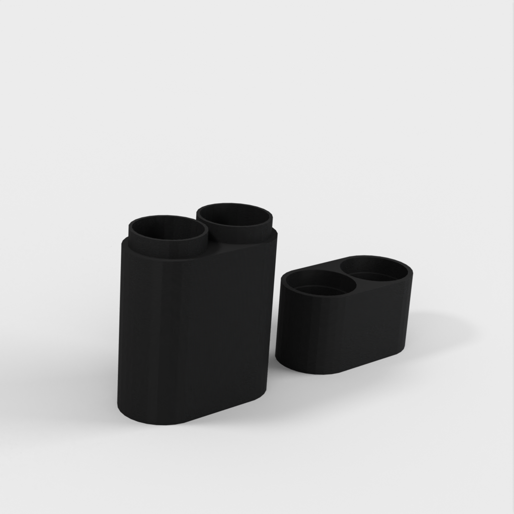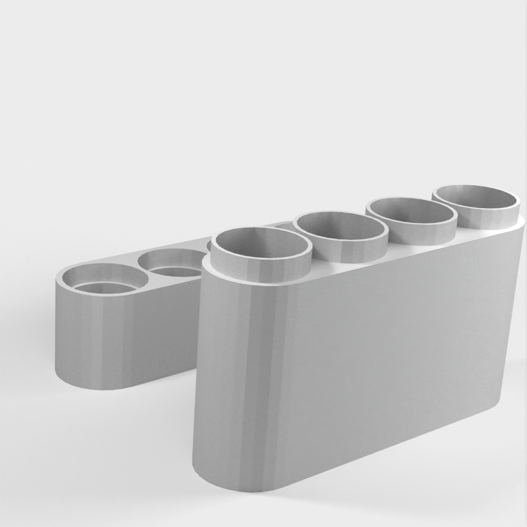 El soporte de viaje para pilas AA y AAA le ayuda a organizar sus pilas de forma eficaz. Este soporte puede contener 2, 4 ó 3 pilas, ya sea en una matriz lineal o 2x2. El soporte consta de una pieza superior y otra inferior, y sigue una sencilla regla empírica: Si la pequeña hendidura está orientada hacia arriba, la pila está cargada.