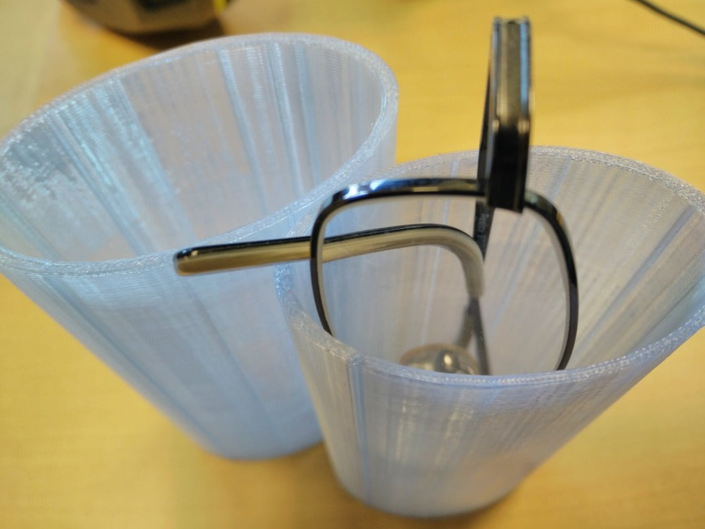 Estuche sencillo para gafas que consta de dos cilindros que se deslizan juntos. El estuche puede contener gafas plegadas y gafas de sol de hasta 3 cm x 5 cm x 20 cm.