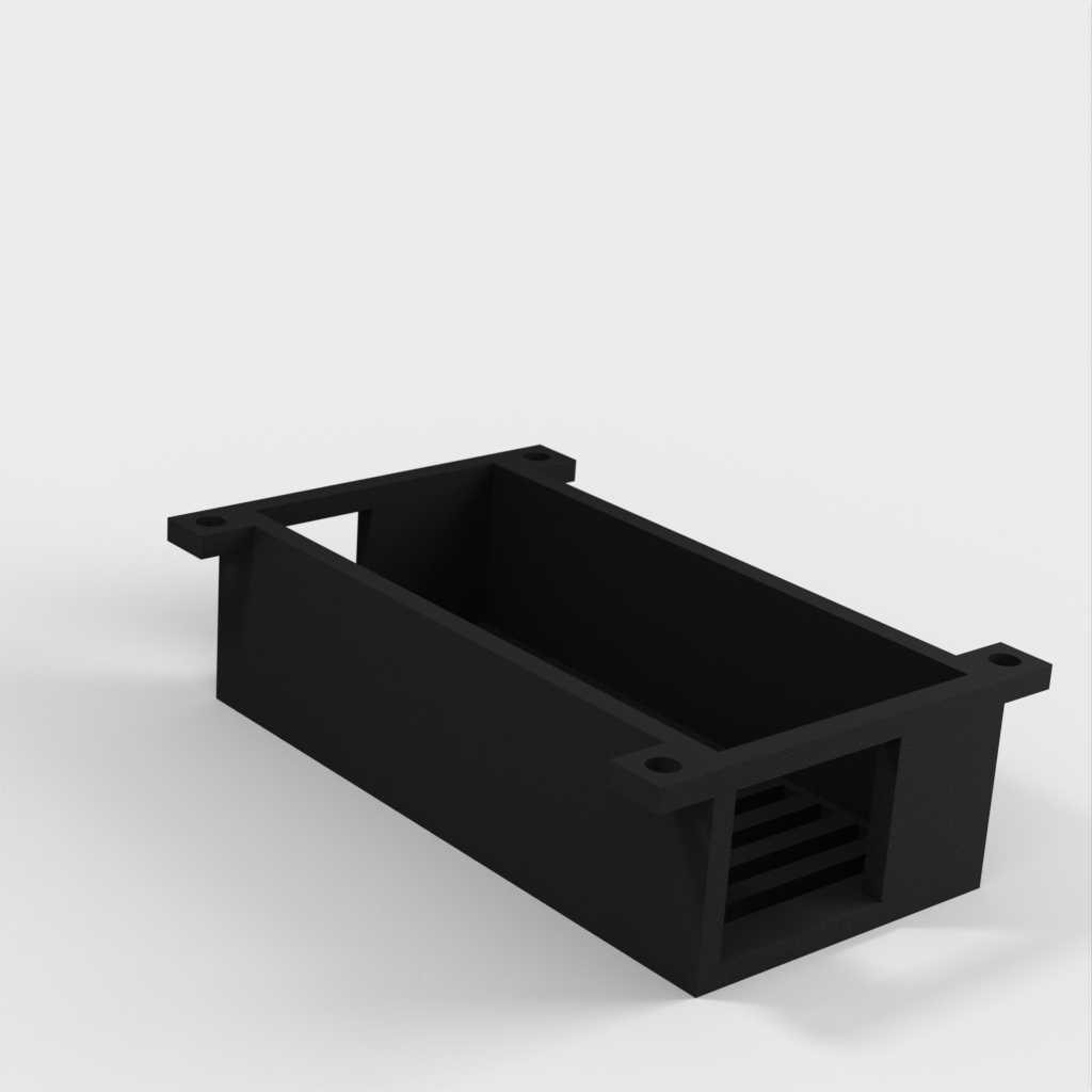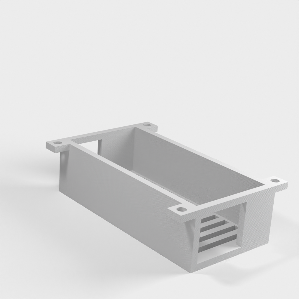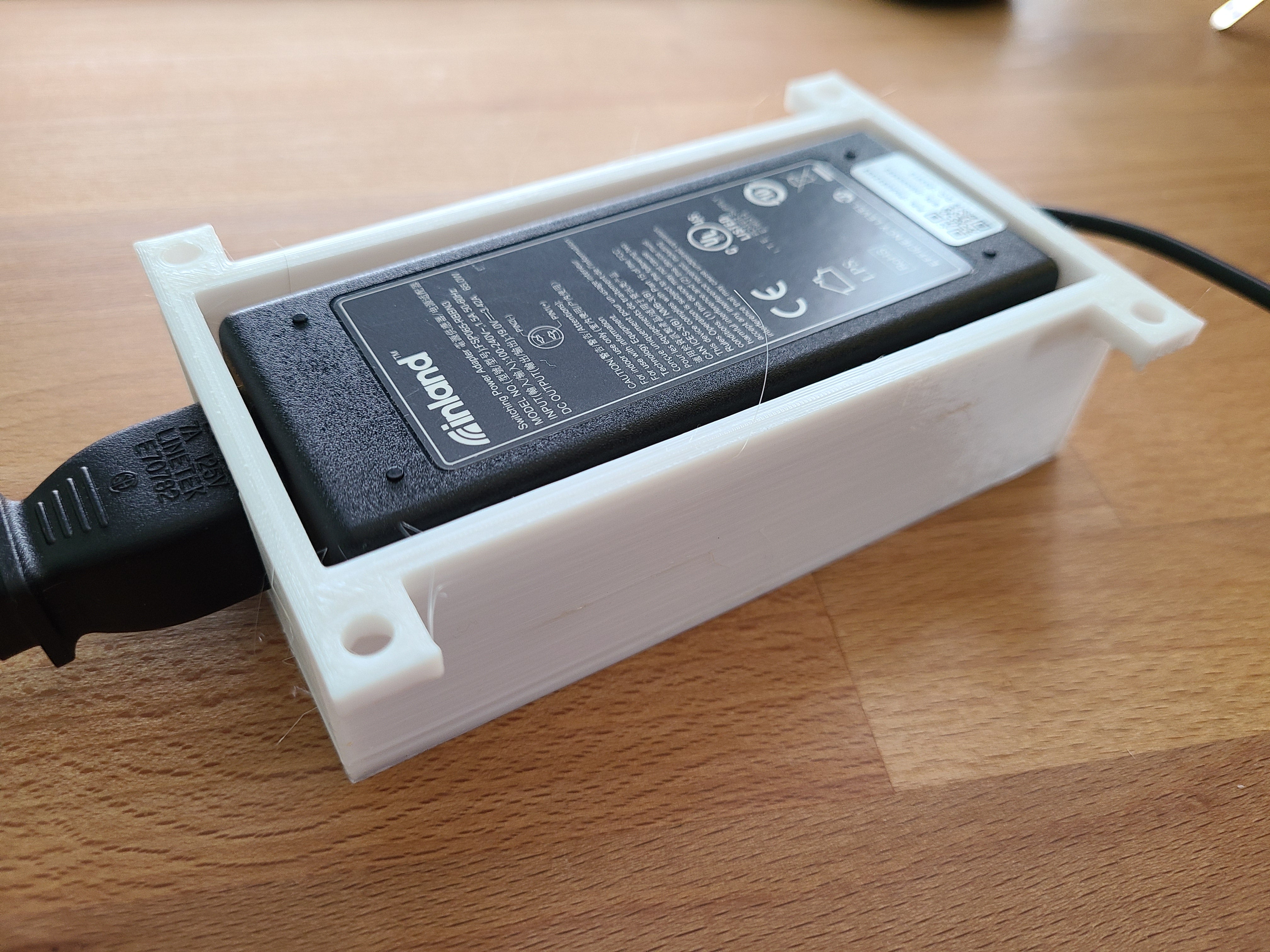 Este soporte bajo escritorio para fuente de alimentación de portátil está diseñado para asegurar los cargadores de portátil bajo el escritorio. Ayuda a evitar que los cargadores desaparezcan del escritorio. Está diseñado específicamente para adaptarse al adaptador universal de 65 W para portátiles Inland (pieza nº FSP065-RBBN3) de Micro Centre. El producto incluye un archivo fuente FreeCAD para remezclar para otras fuentes de alimentación.