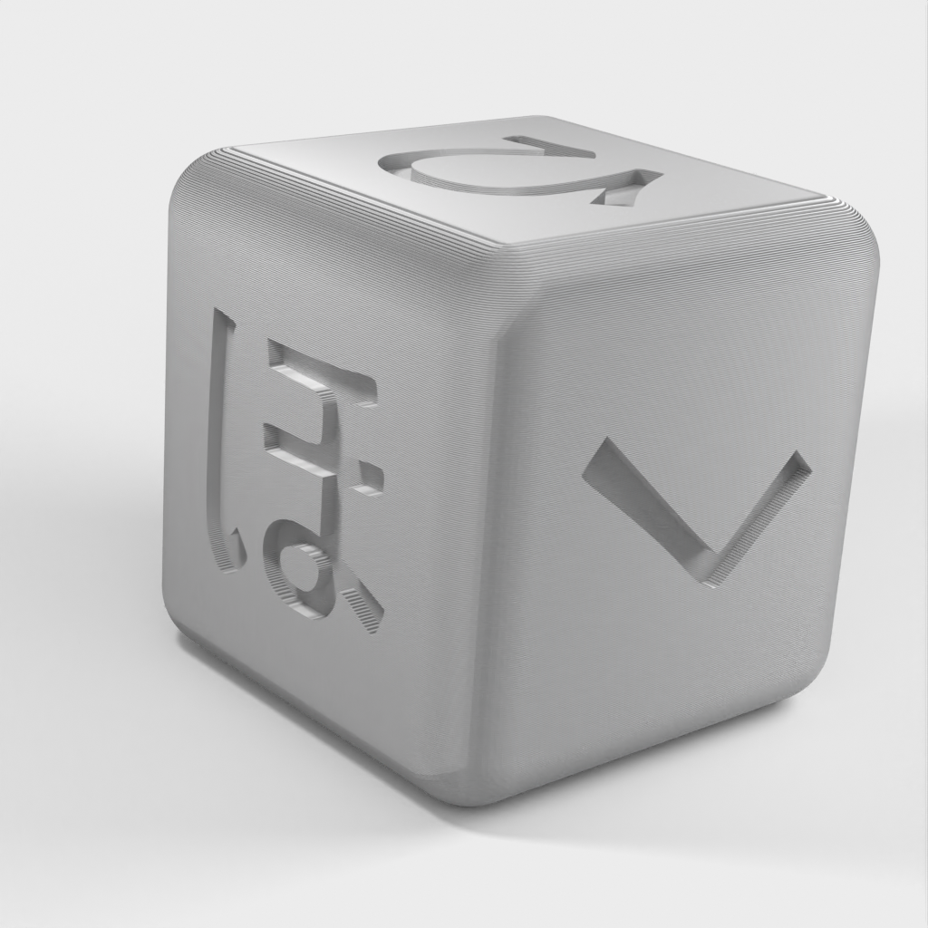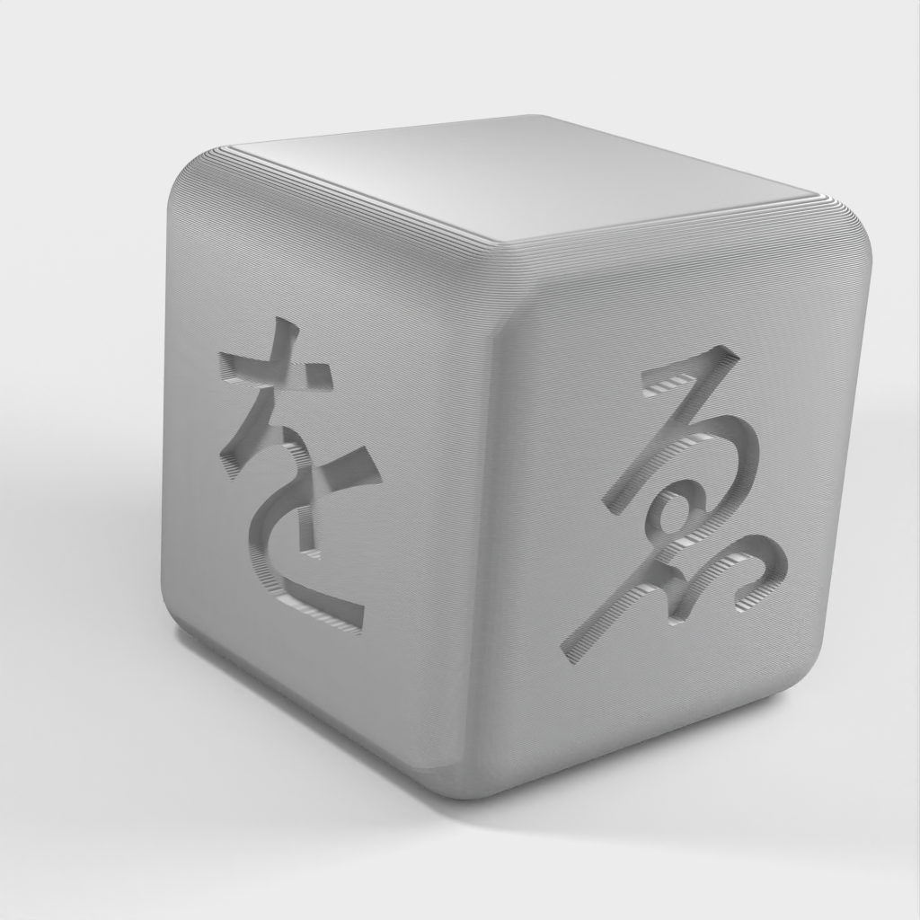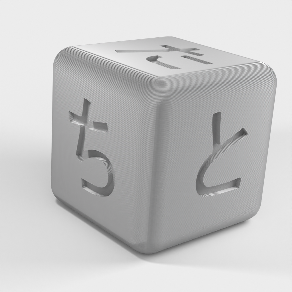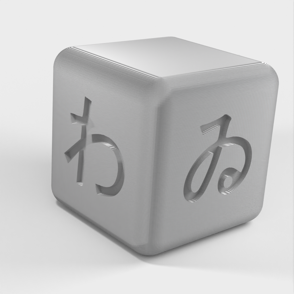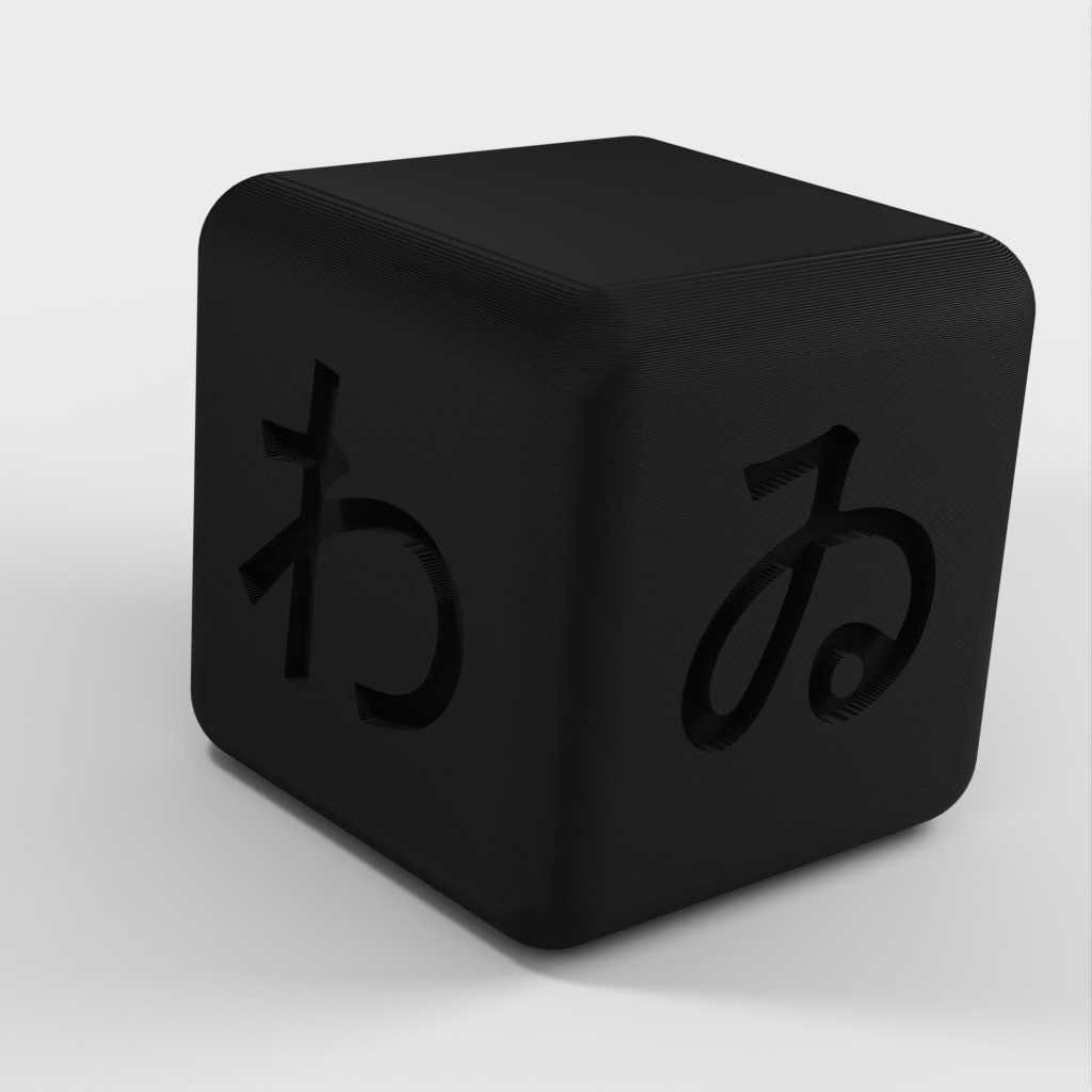 Son dados hiragana, un juguete educativo diseñado para ayudar a aprender el alfabeto japonés, hiragana. Los cubos miden 2 cm x 2 cm x 2 cm y se pueden escalar según se prefiera. Ideales como fichas de seis caras, la mayoría tiene 5 caras con un símbolo y un fondo plano. Además de ser un pequeño juego divertido, te ayudará con la comprensión básica de la lengua japonesa.